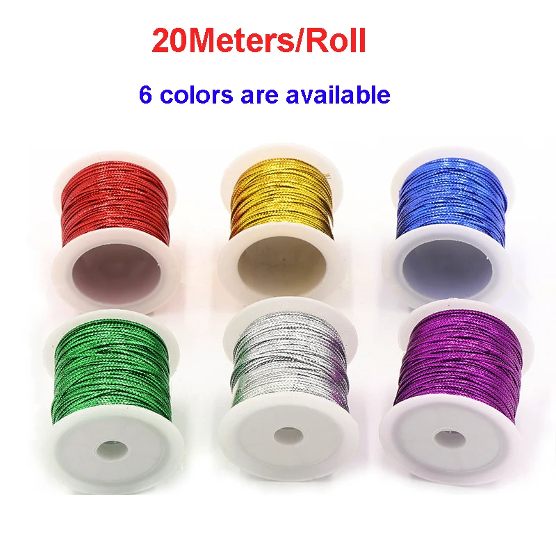 Эластичный металлический шнур, 20 метров, растягивающийся шнур, разноцветный шнур с мишурой для рукоделия, изготовления упаковки подарков