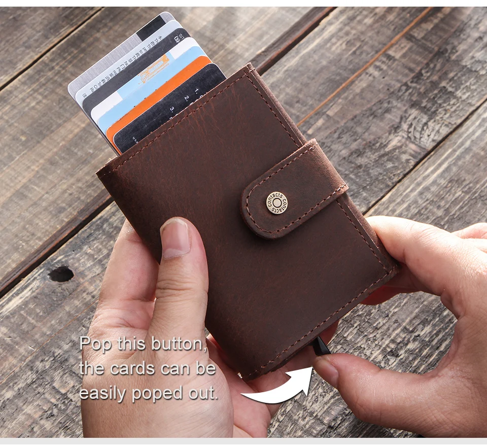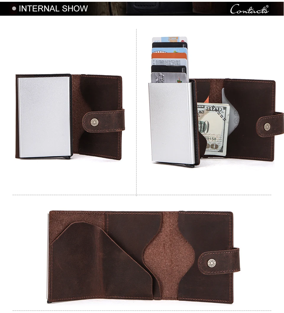 Кошелек мужской из кожи Crazy Horse, с алюминиевой отделением для кредитных карт, с Rfid-защитой, на заказ, мужской карт-Холдер, кошелек