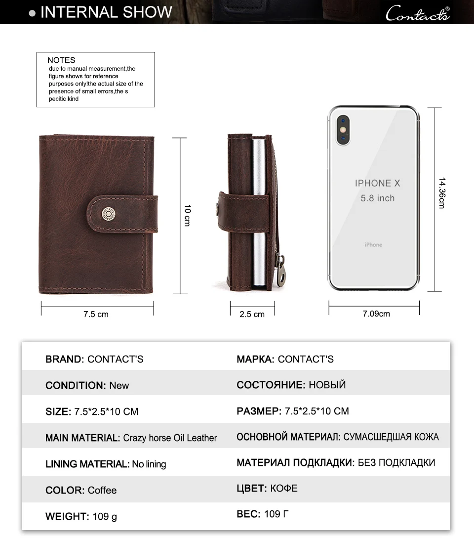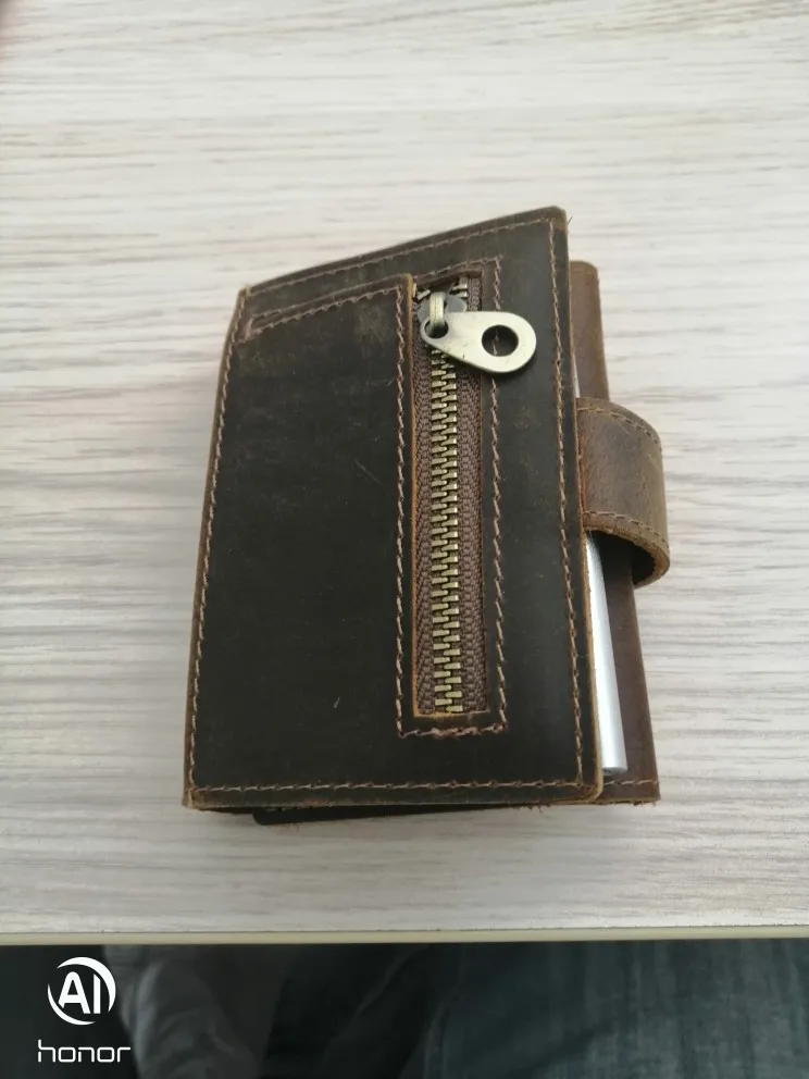 Все как в описании. 7 Карт влезает в коробку. Кожа правда выглядит немного странно. Возможно обработка такая. Маленький и акуратный. Кроме карт и купюр в него вряд ли что либо залезет (документы и тд). Все сделано под размер кредитной карты. До германии дошло за 28 дней.