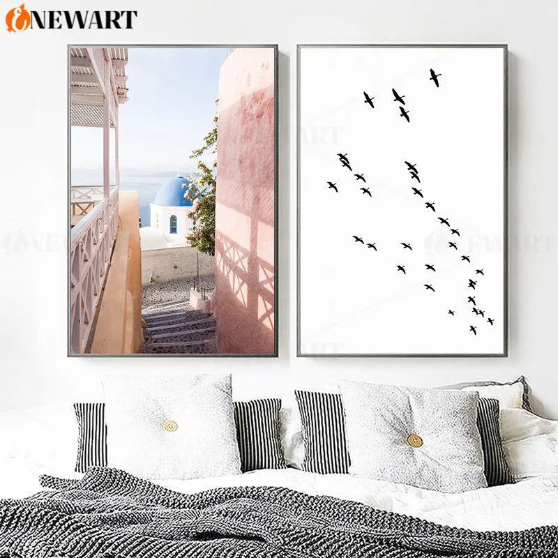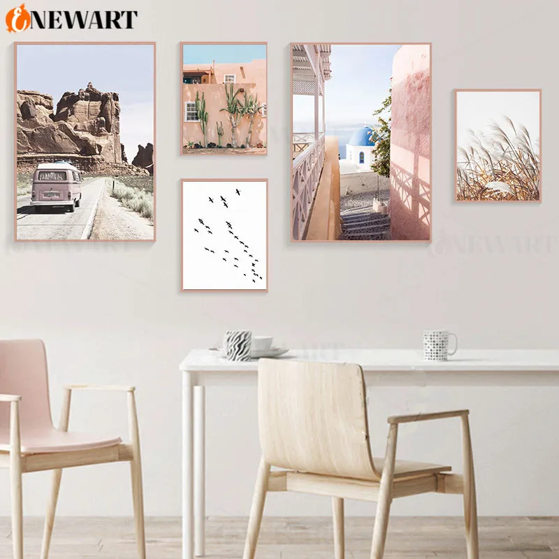 Современный городской розовый пейзаж настенный плакат печать пара з...