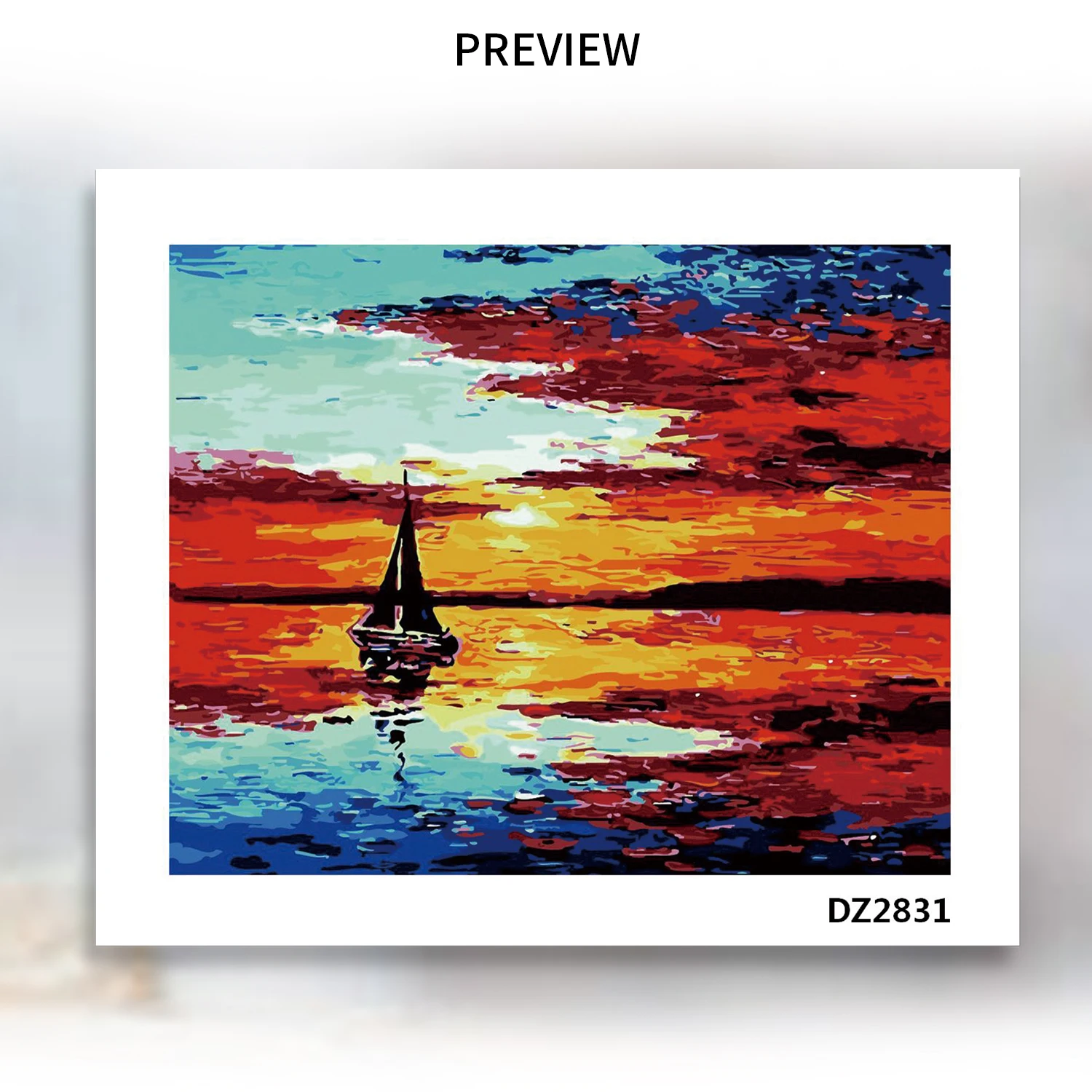 Бескаркасная лодка заката, DIY картина по номерам, современный наст...