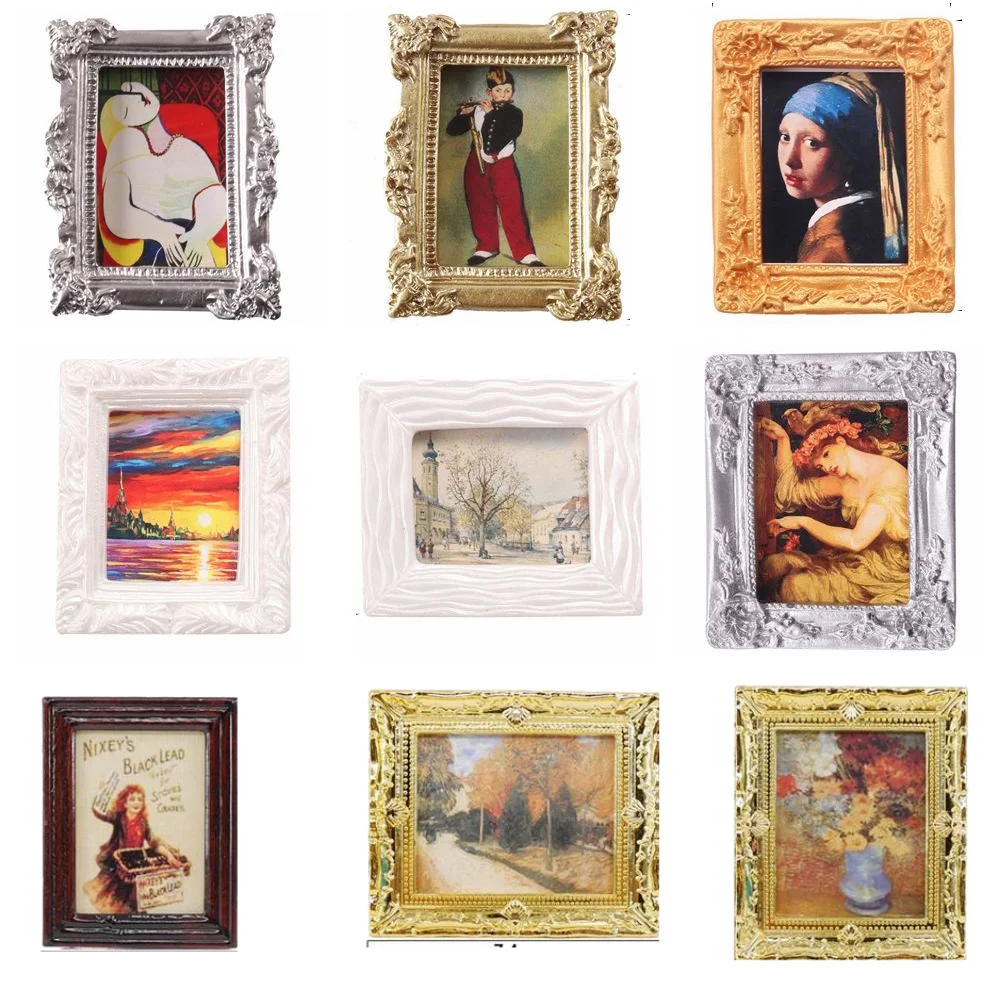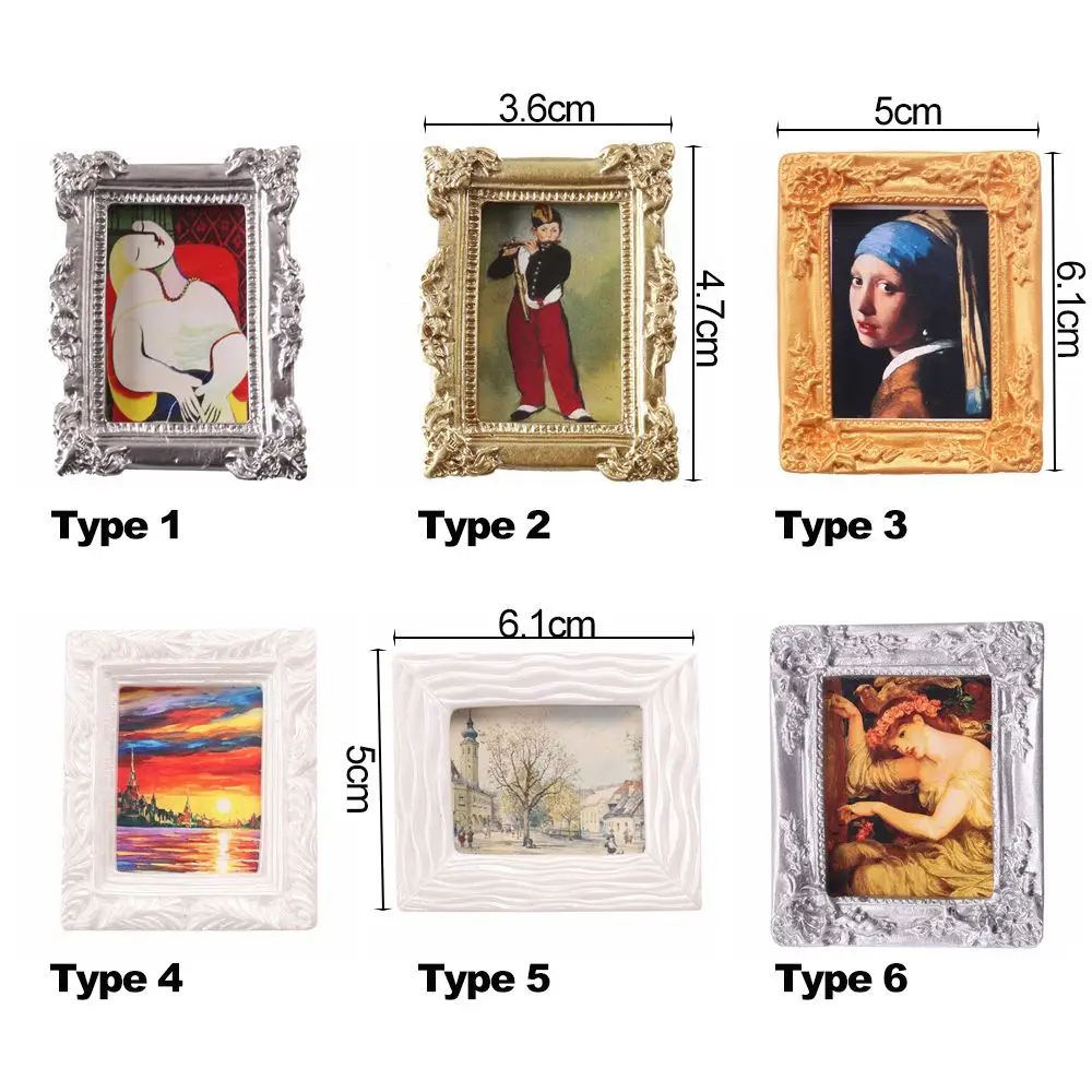 Масштаб 1:12 миниатюрная картина маслом для кукольного домика винтажный персонаж пейзаж картина Мини фоторамка для кукольного домика настенные украшения
