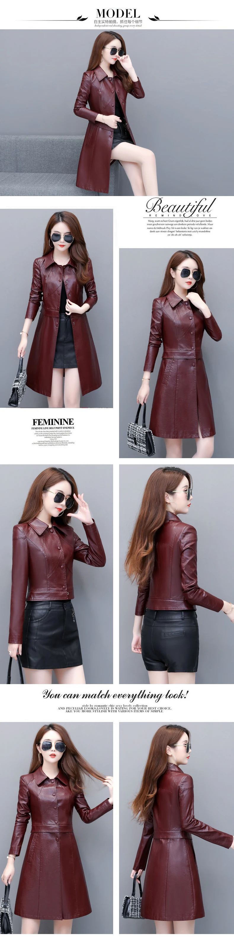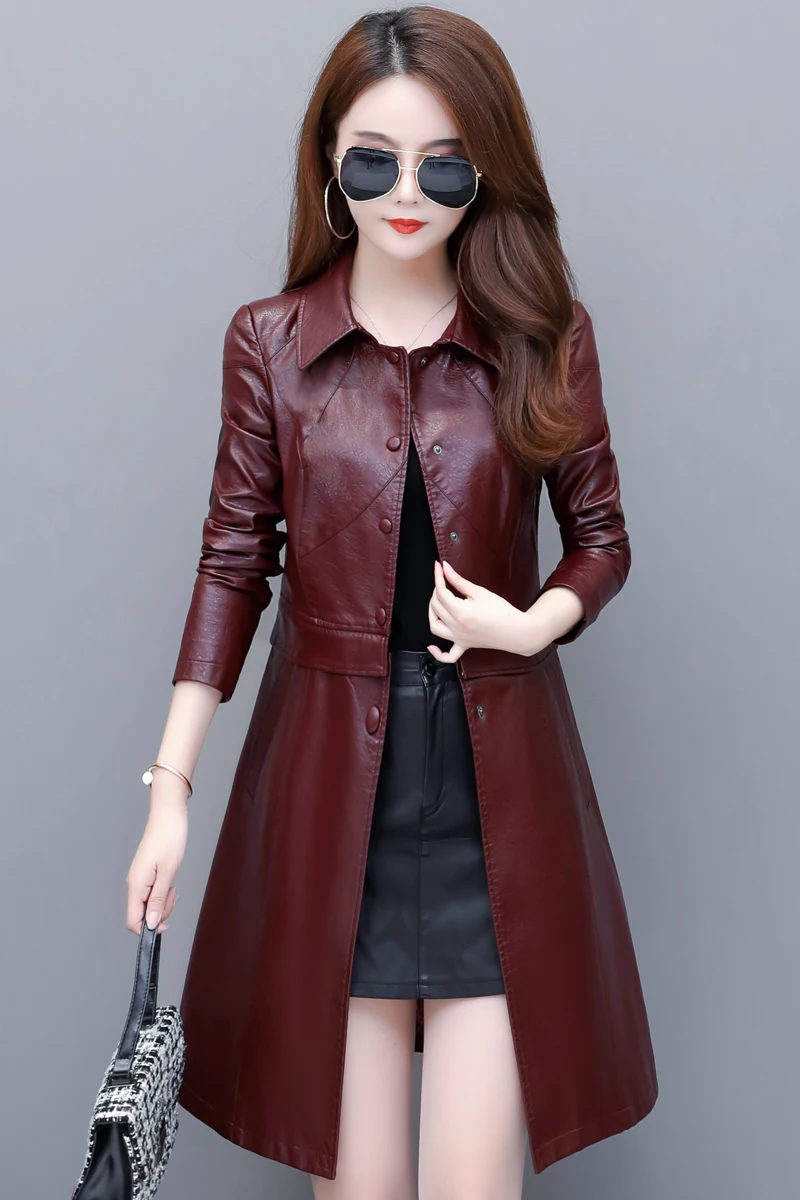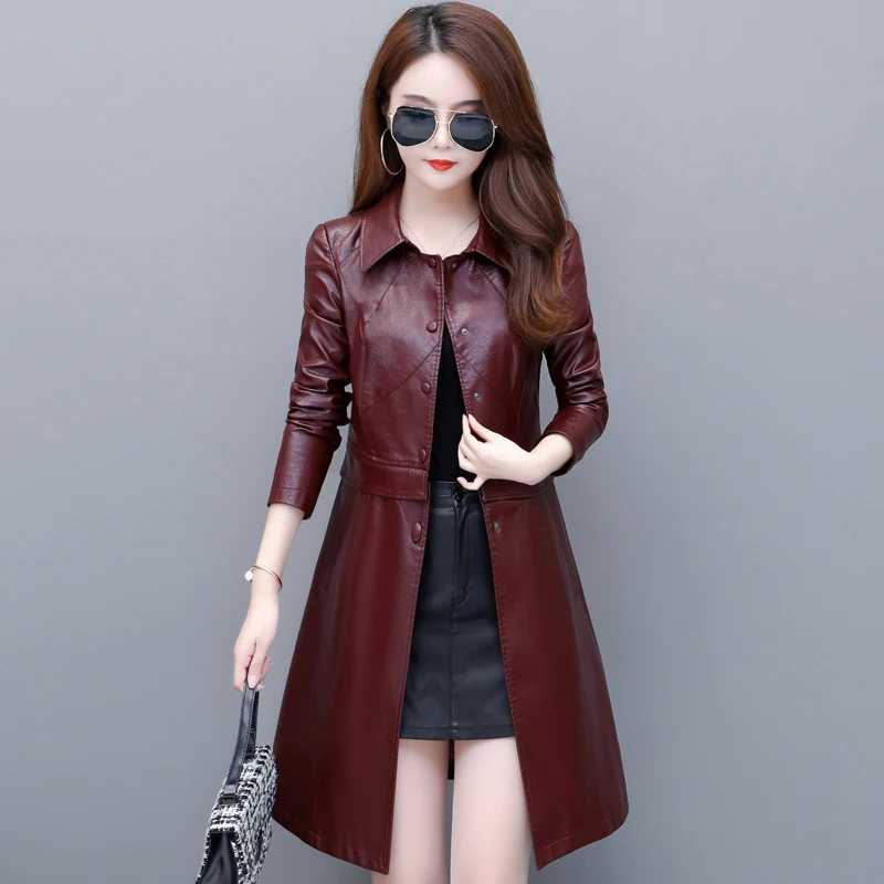 Осенне-зимняя Длинная кожаная куртка Brieuces, Женское пальто большого размера, женское весеннее пальто, мотоциклетный Тренч из искусственной кожи, женская верхняя одежда