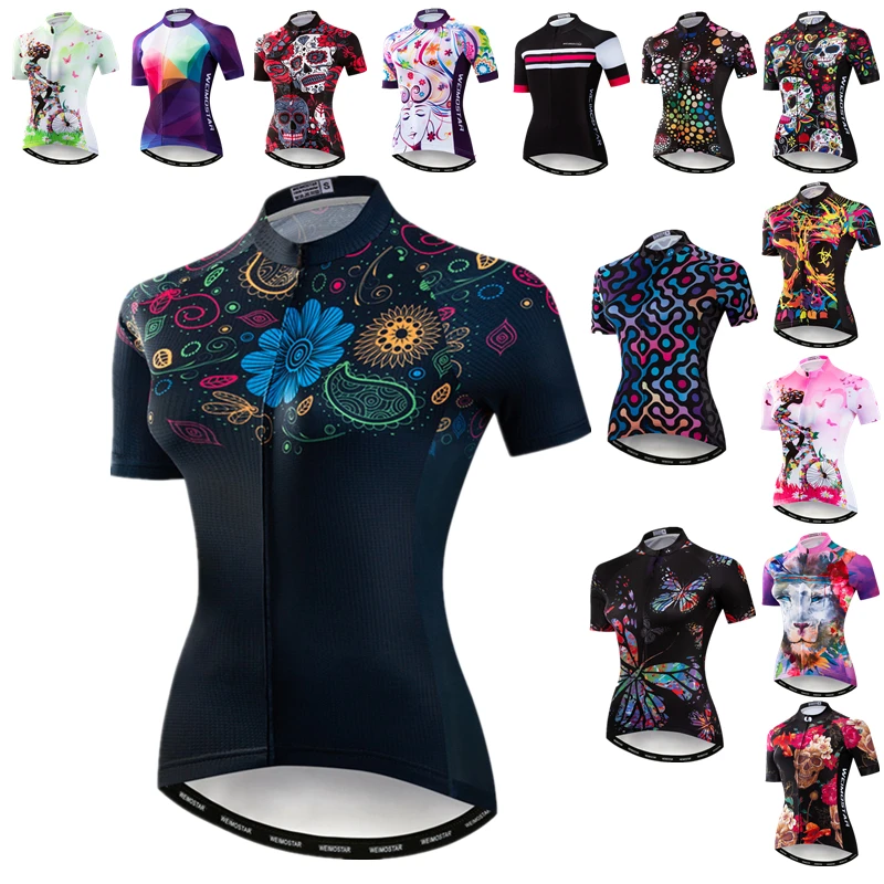 Женская футболка с коротким рукавом Weimostar, летняя одежда для велоспорта с цветочным принтом, 2021