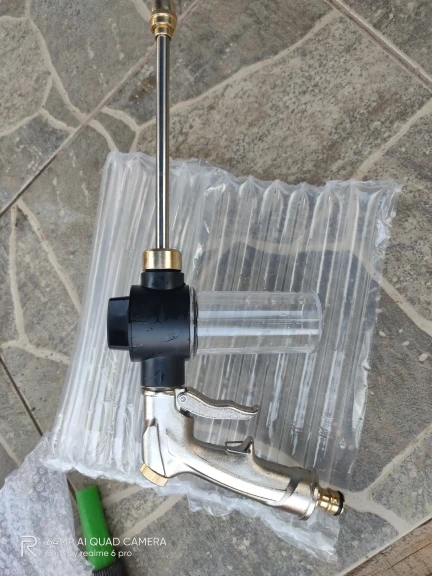 Этот пистолет отличного качества. Уверяем вас, что не обычная игра, которую вы покупаете в киосках, которую вы используете дважды, а третий уже разобран ..... Это действительно хорошо сделано! Никогда не просматривайте ничего похожего и с этими характеристиками. Первое поступление хорошо упаковано в картонный профиль, внутри которого находится руководство пользователя. Операция очень проста: вы можете регулировать поток выходной воды через соответствующий тумблер. Все могут быть выполнены только одной рукой. Атака-это латунь, поэтому невозможно, что вы бюст, а также пистолет покрыт слоем резины, которая обеспечивает большой захват также с мокрыми руками. Отлично подходит для полива растений в саду и сопратто для мытья машины и собаки.