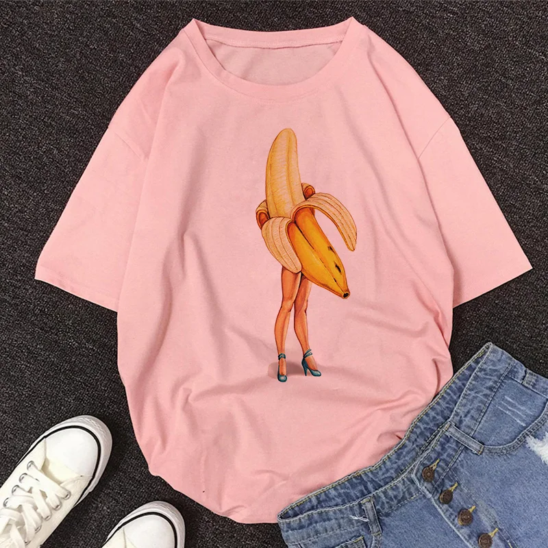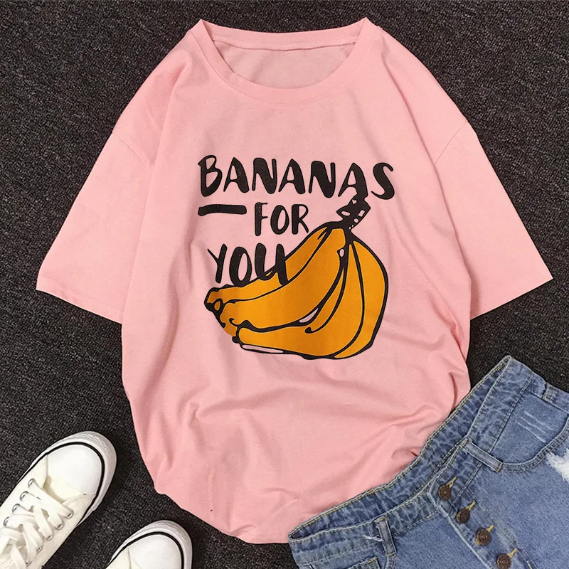 Футболка женская с принтом бананы для вас, лето 2020, с круглым выр...