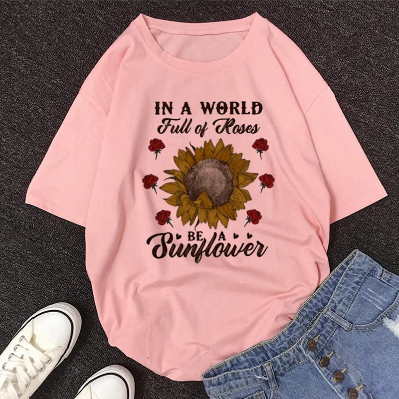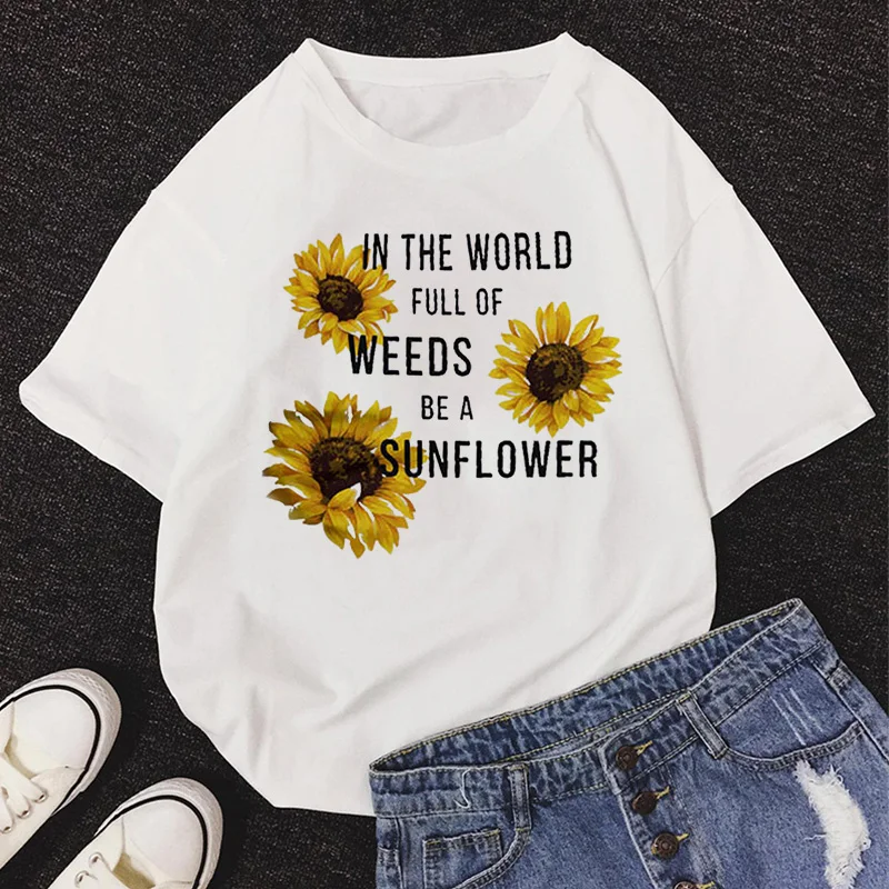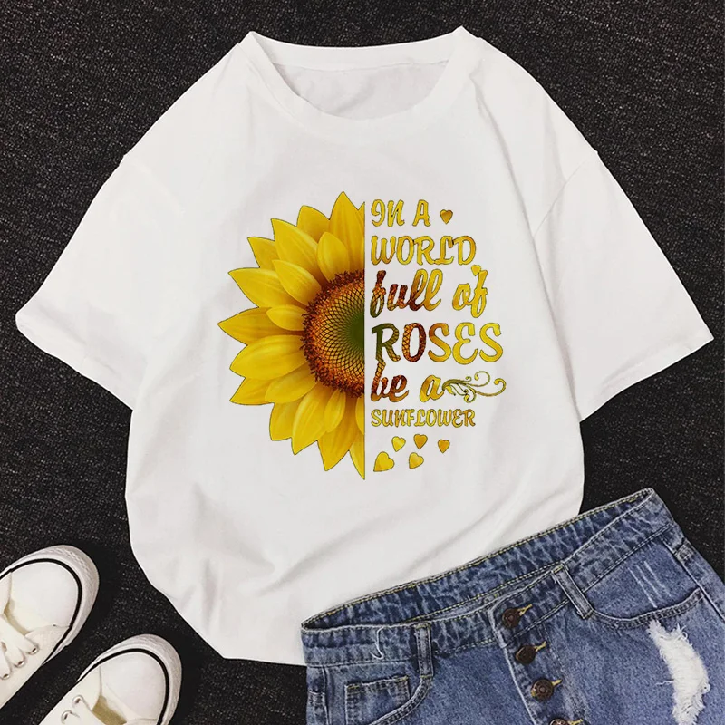 Женская летняя футболка с коротким рукавом, с цветочным принтом