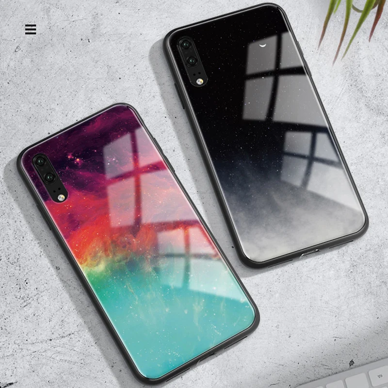 Цветной стеклянный чехол для Huawei P10, P20, P30 Lite, Pro, Nova 3...