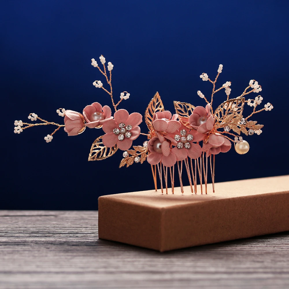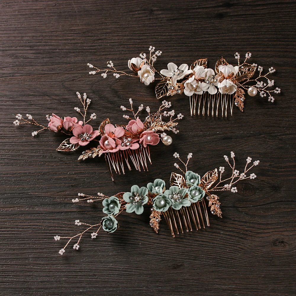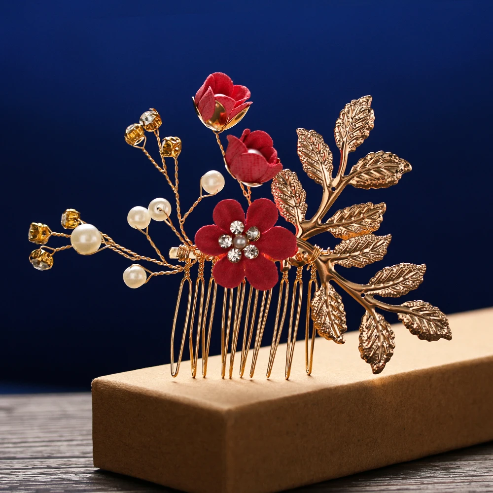 Свадебные аксессуары для волос, золотые листья, украшения для волос, модные роскошные синие цветочные гребни для волос, головной убор для выпускного вечера