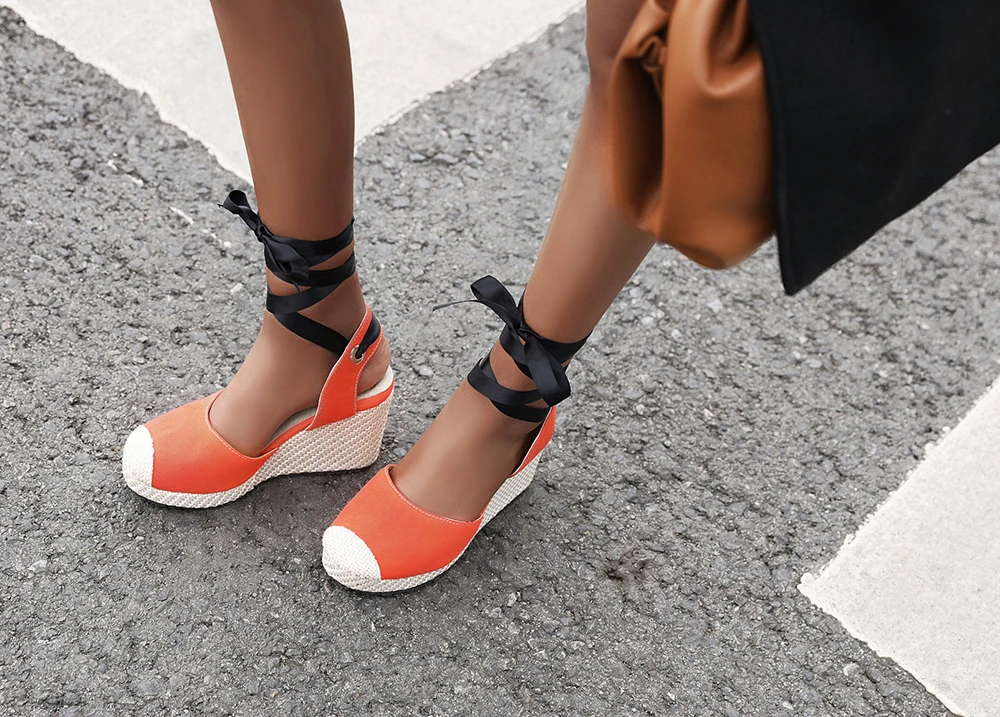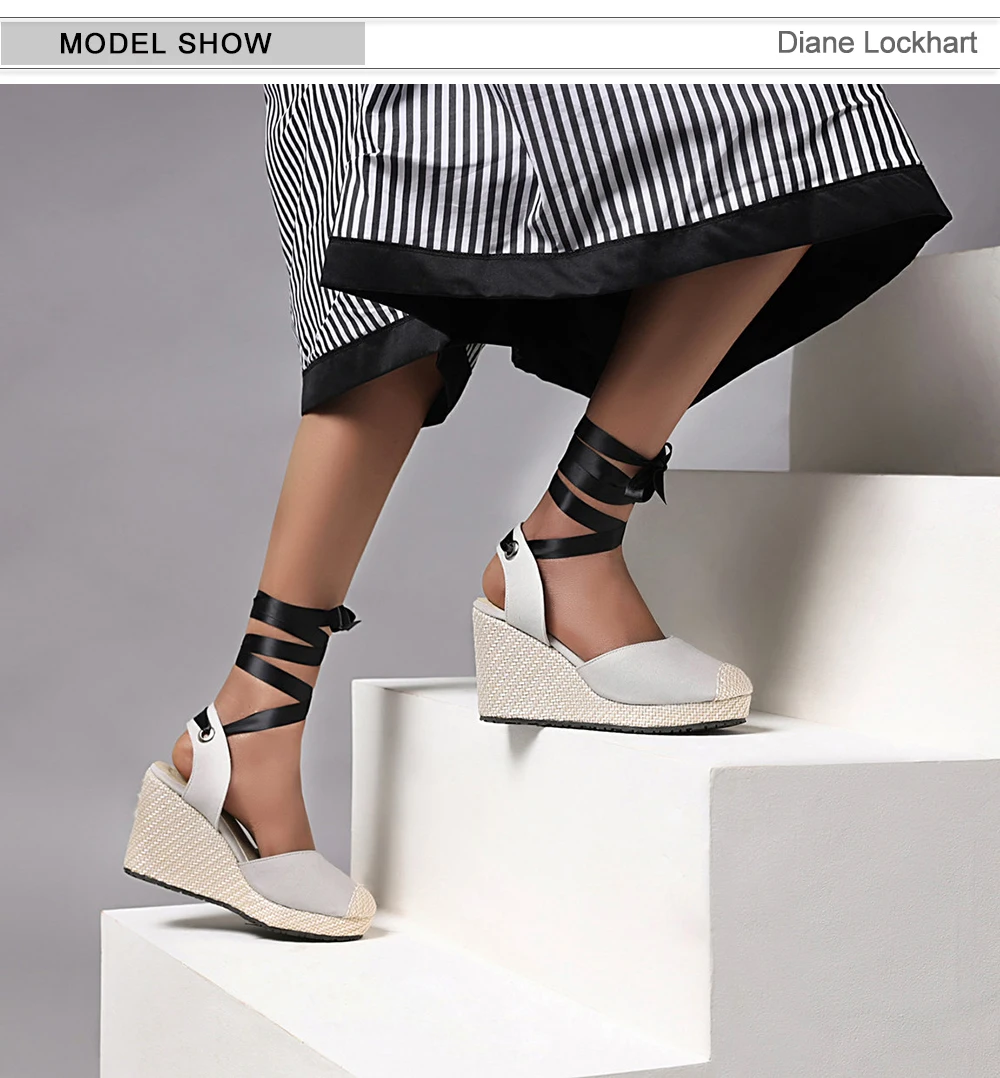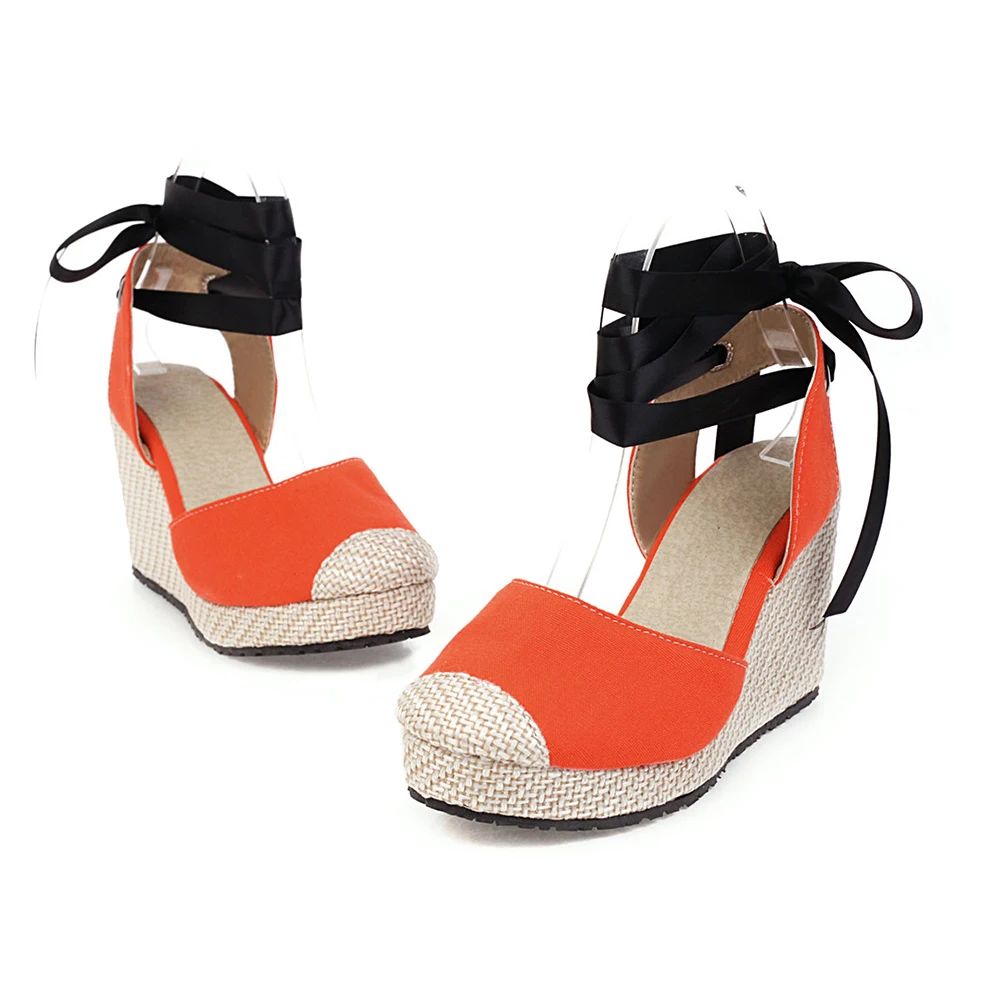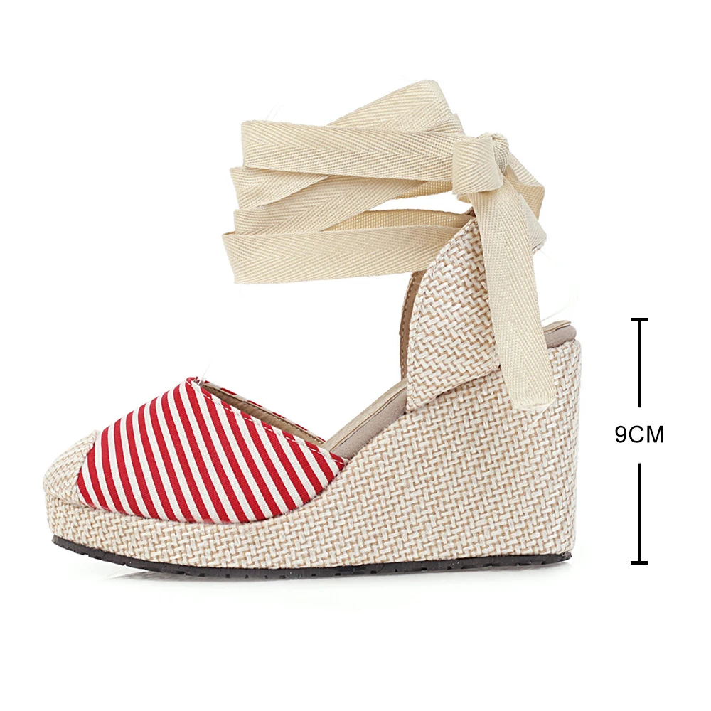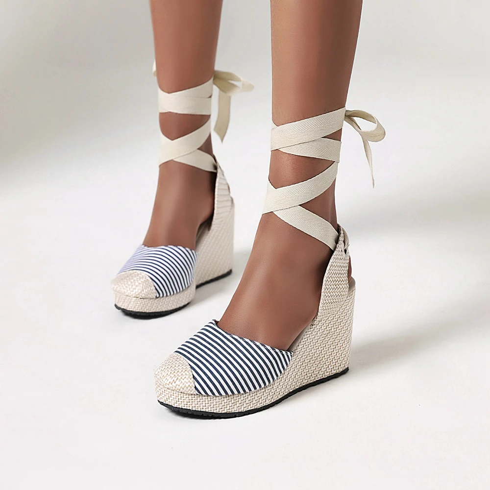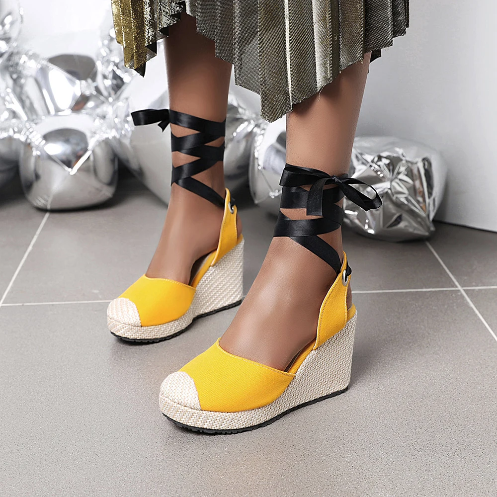 Женские туфли-лодочки на танкетке, соломенные туфли на высоком каблуке, с перекрестной шнуровкой, с ремешком на щиколотке, для вечеринок, для лета, 2020