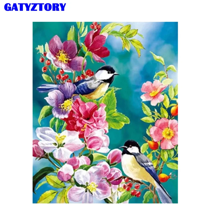 GATYZTORY Раскраска по номерам, цветок, птицы, DIY картина маслом по номерам, холст, наборы для раскрашивания по номерам, настенное искусство для домашнего декора