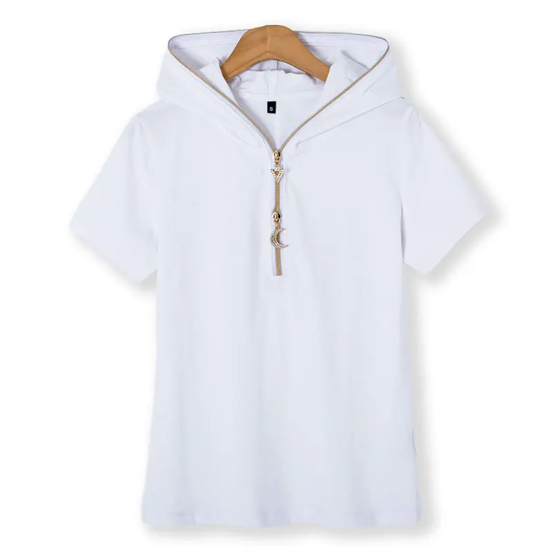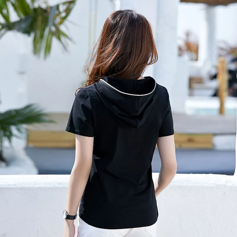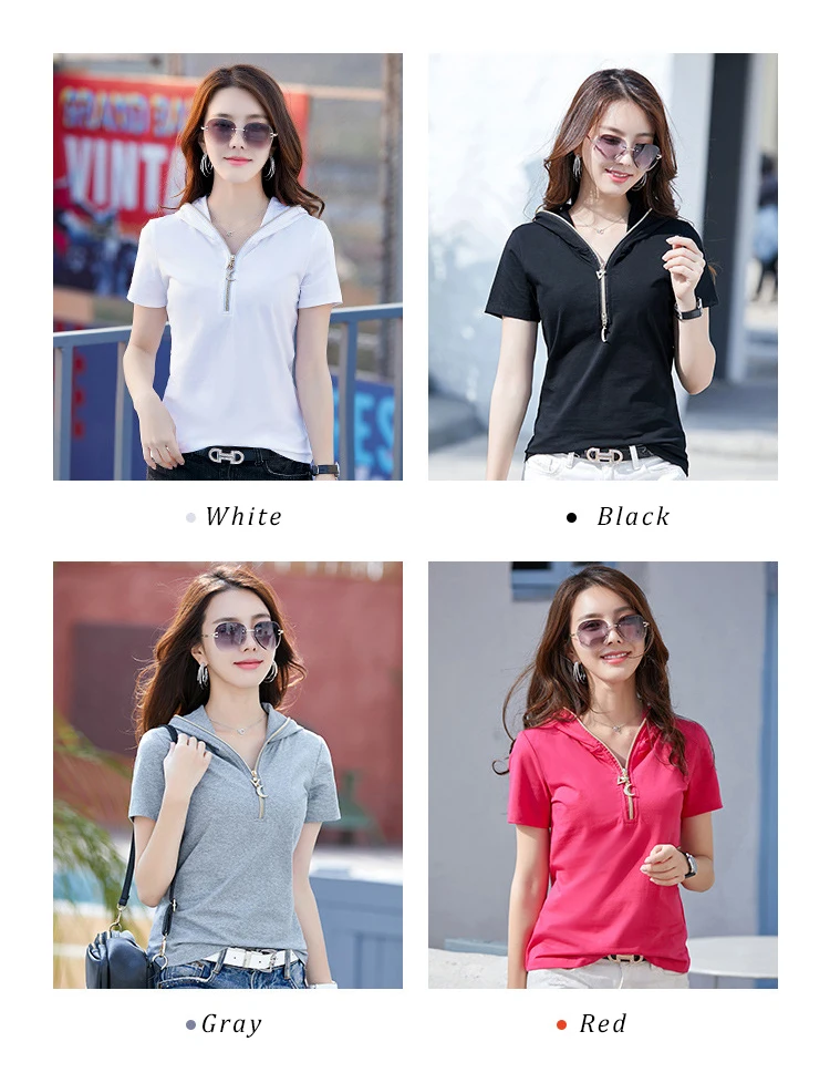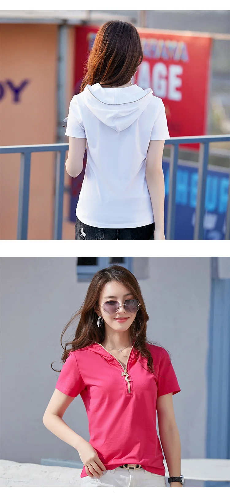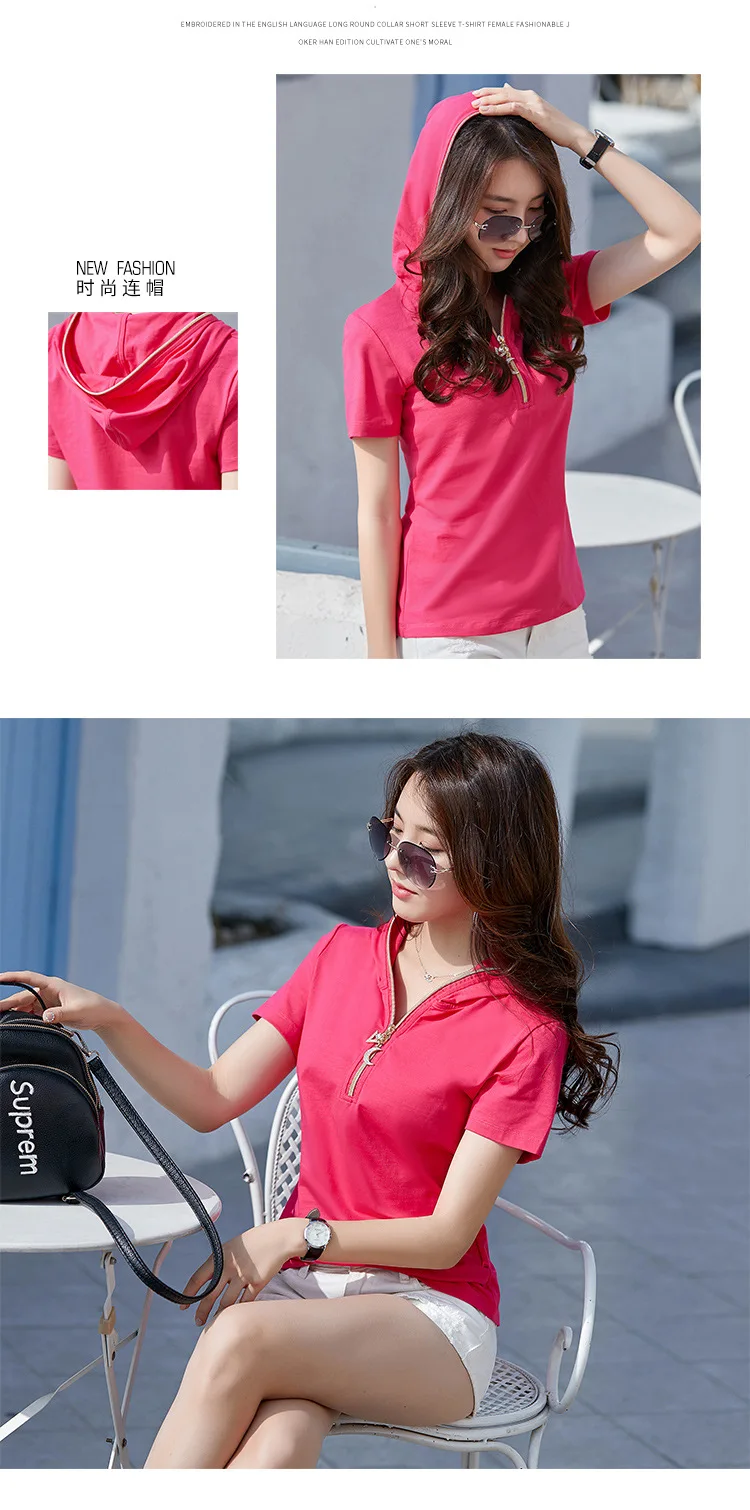 Новинка 2022, футболка Lusumily на молнии с капюшоном, женские черные летние футболки, футболка с коротким рукавом в Корейском стиле, модель 3xl, футболка, топы для девочек