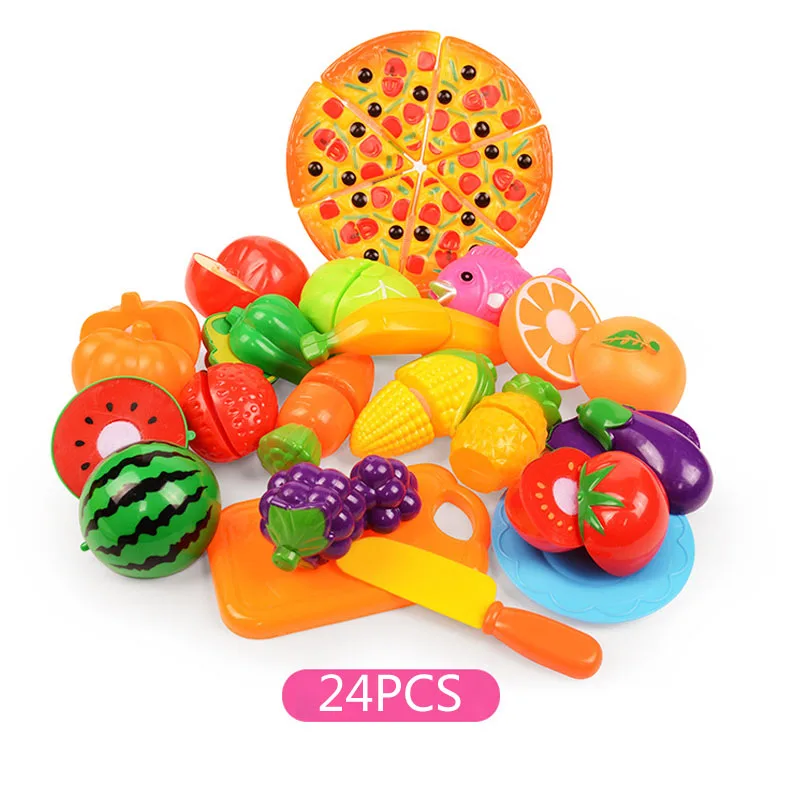 24 шт.лот детская кухня ролевые игры домик игрушка резка фруктов пластиковые овощи корзина для еды набор детские развивающие игрушки