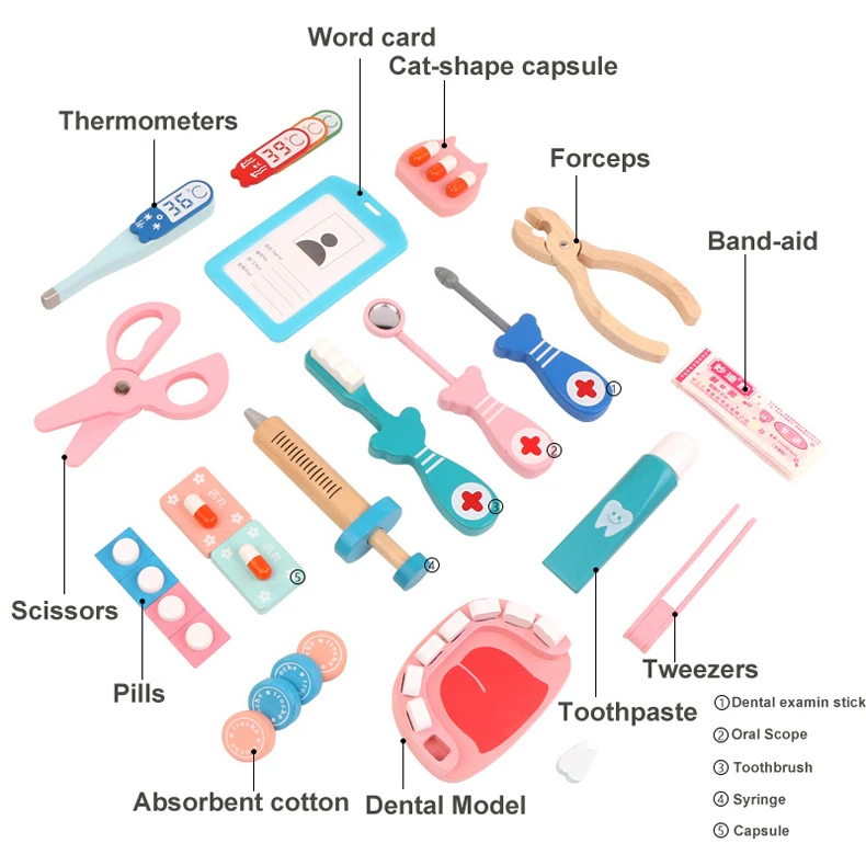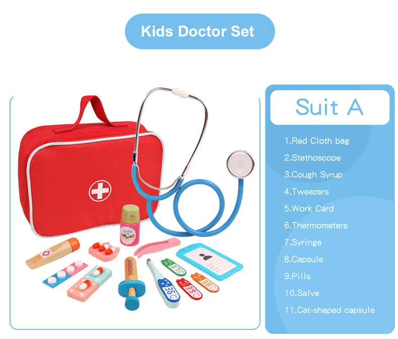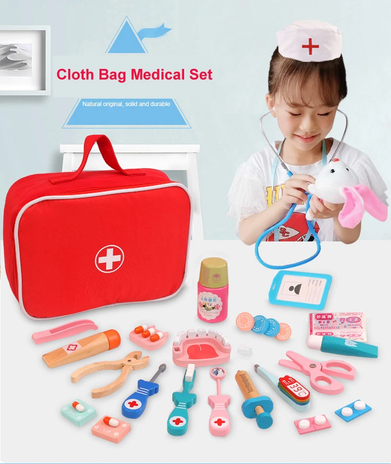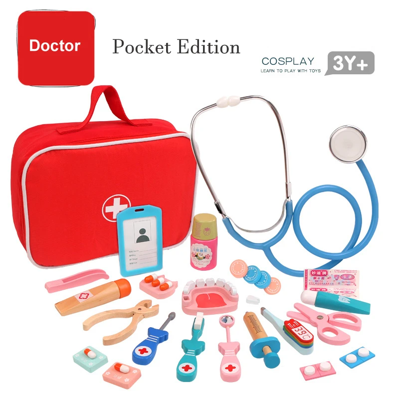 Игрушечный набор для врача, стоматолог, медсестра, красный набор лекарств, деревянный набор для ролевых игр, подарки для детей