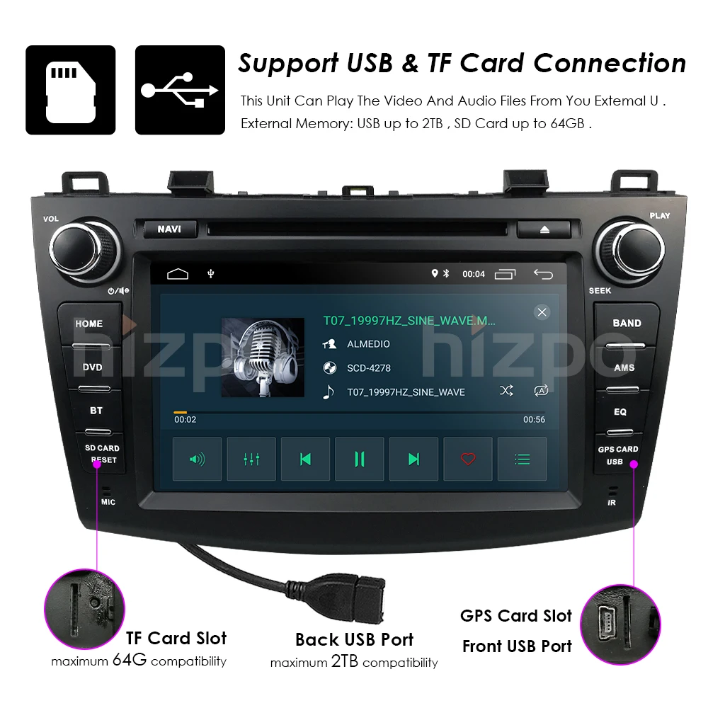 HIZPO для MAZDA 3 2010 2011 2012 2013 Android 10 8 дюймов Rom 16 Гб автомобильный радиоприемник с навигацией GPS мультимедийный плеер AM FM RDS DAB BTTPMS