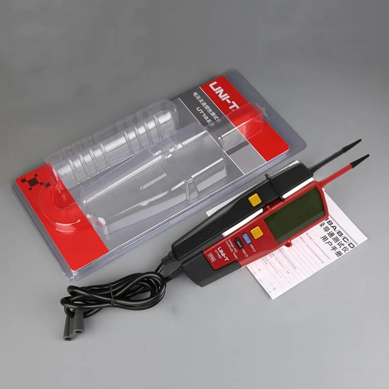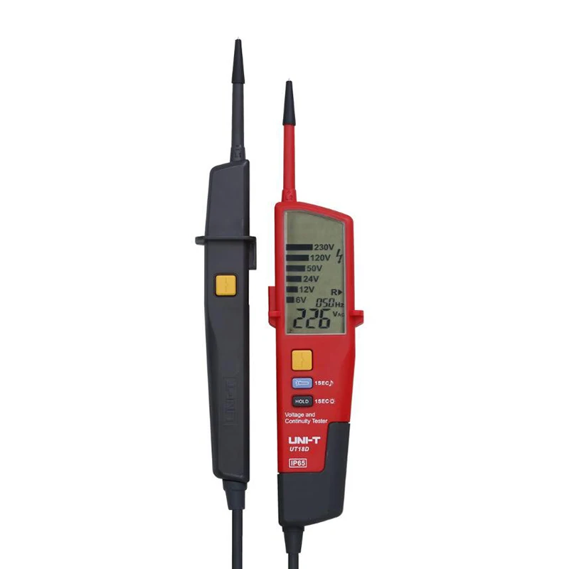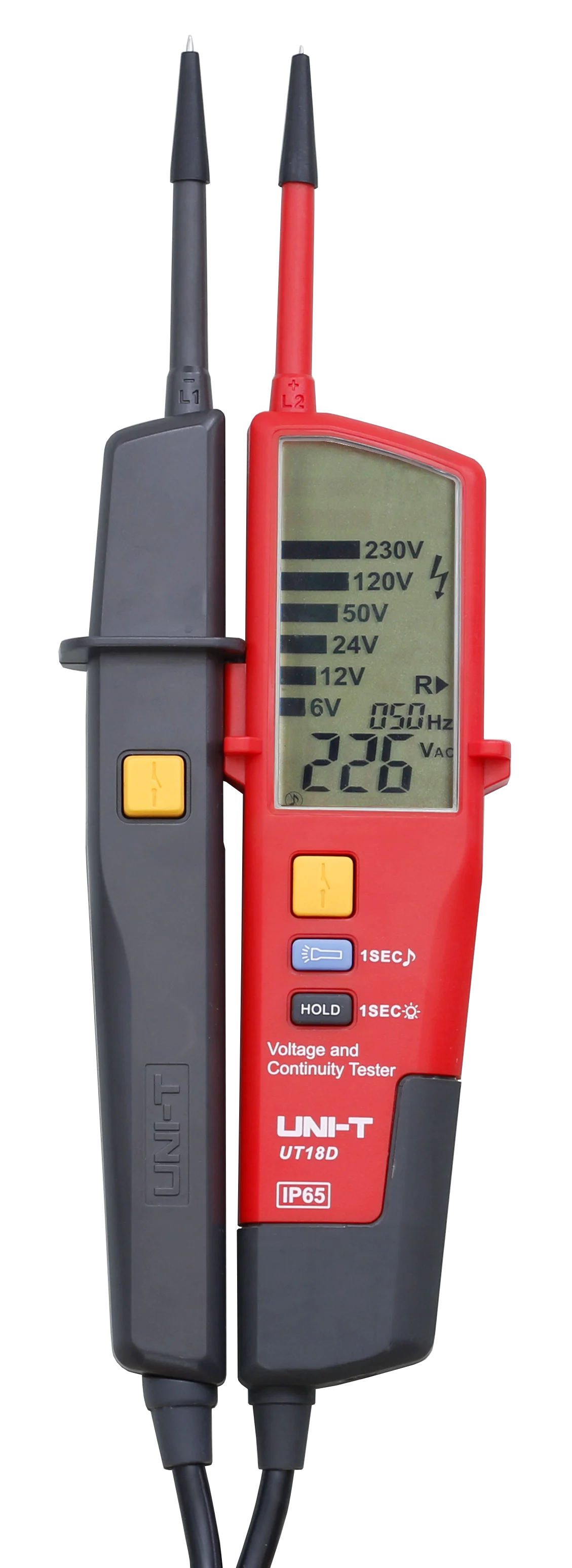UT18D может обеспечить измерение напряжения переменного и постоянного тока (включая Трехфазный переменный ток), фазу трехфазного индикатора питания переменного тока, испытание ВКЛ-ВЫКЛ, тест на код, измерение одной ручкой (можно определить нулевую линию или провод), самопроверку и другие функции.