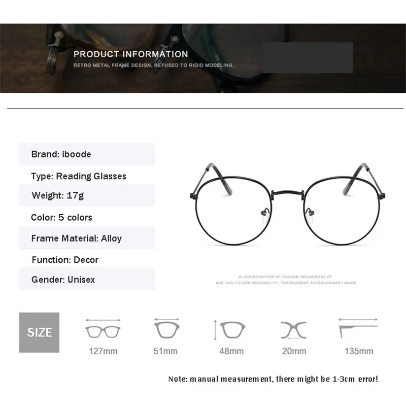 Очки для чтения унисекс iboode, круглые металлические очки для чтения в стиле ретро, золотистая, черная, серебристая оправа + 1,0, 1,5, 2,0, 2,5, 3,0, 3,5, 4