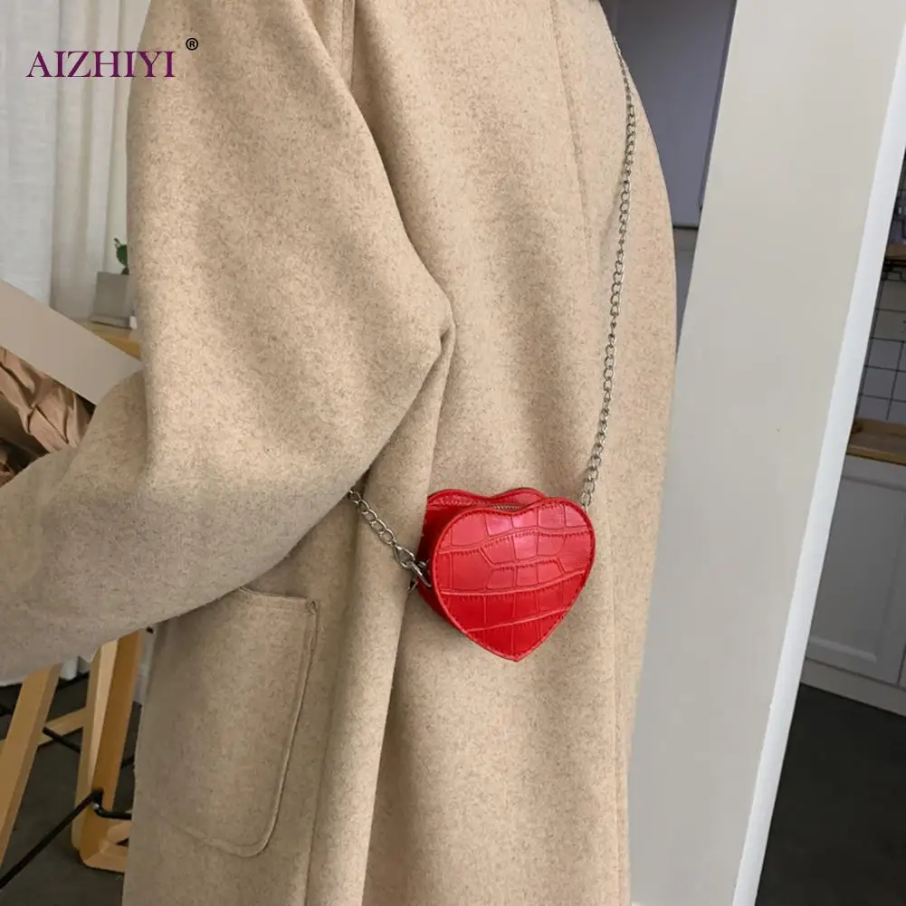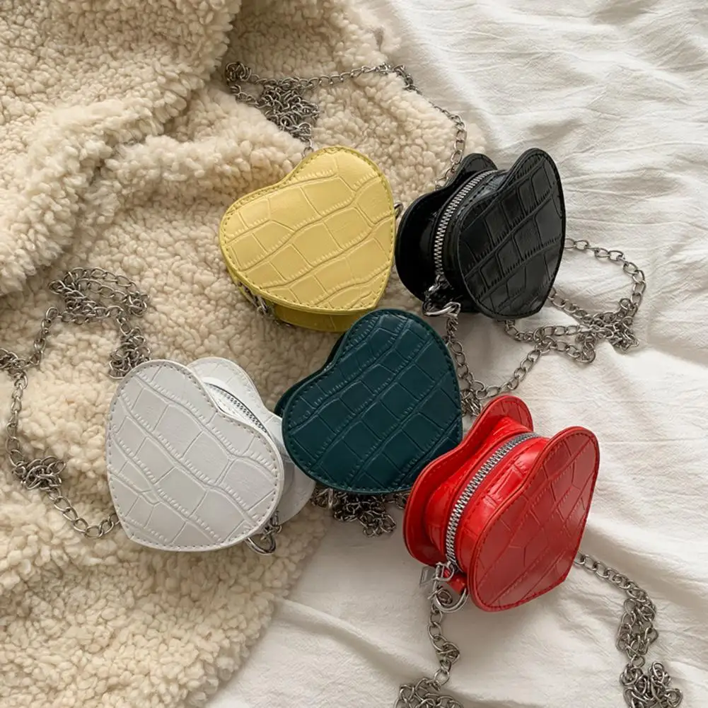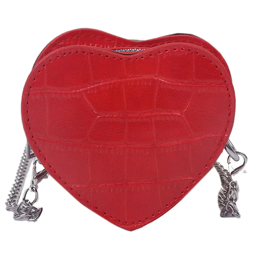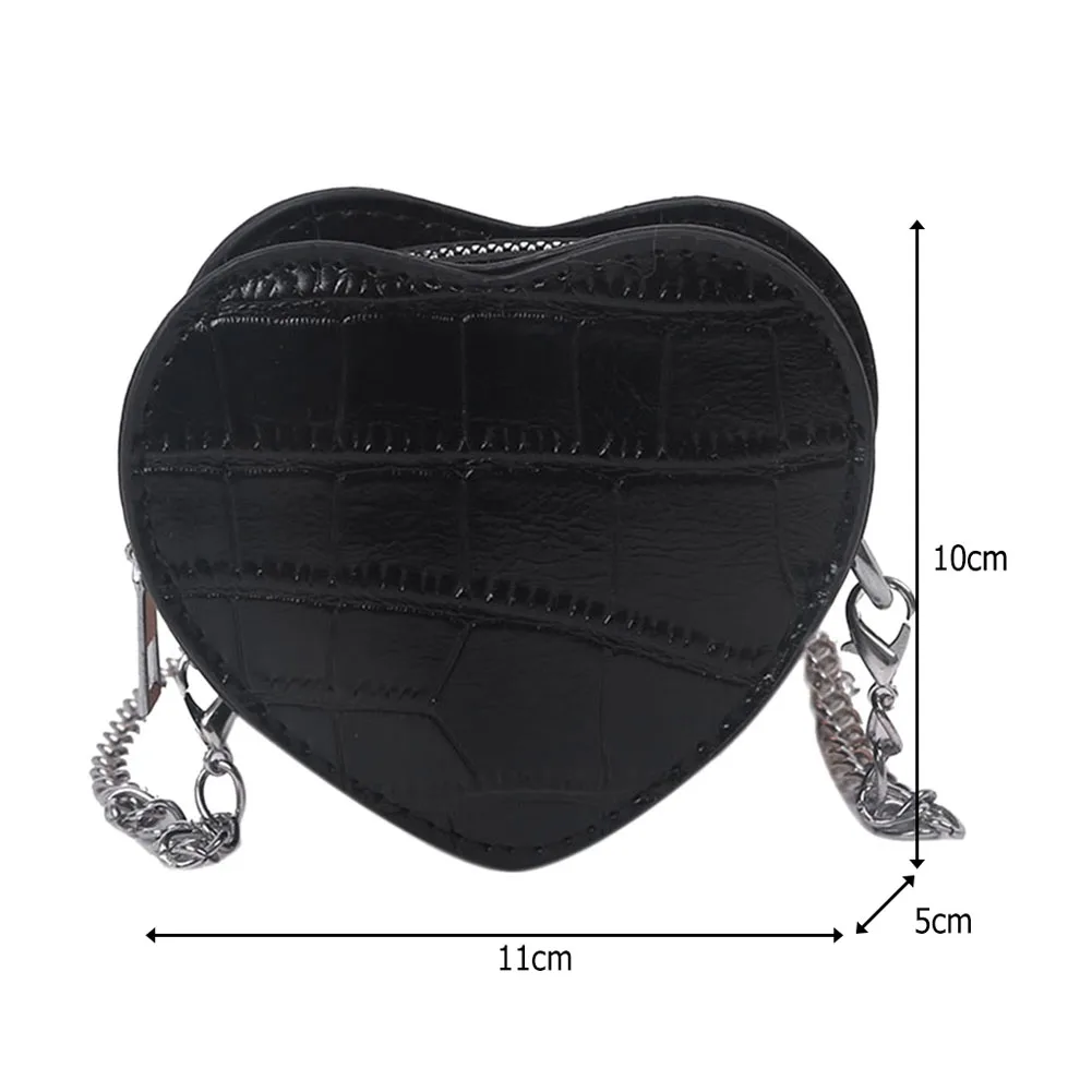 Дамские повседневные мини-сумки через плечо в форме сердца, женские детские кожаные однотонные маленькие сумки на плечо с цепочкой