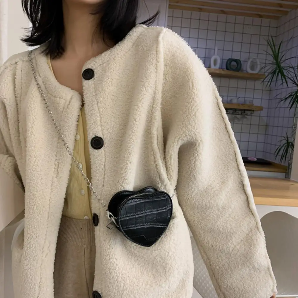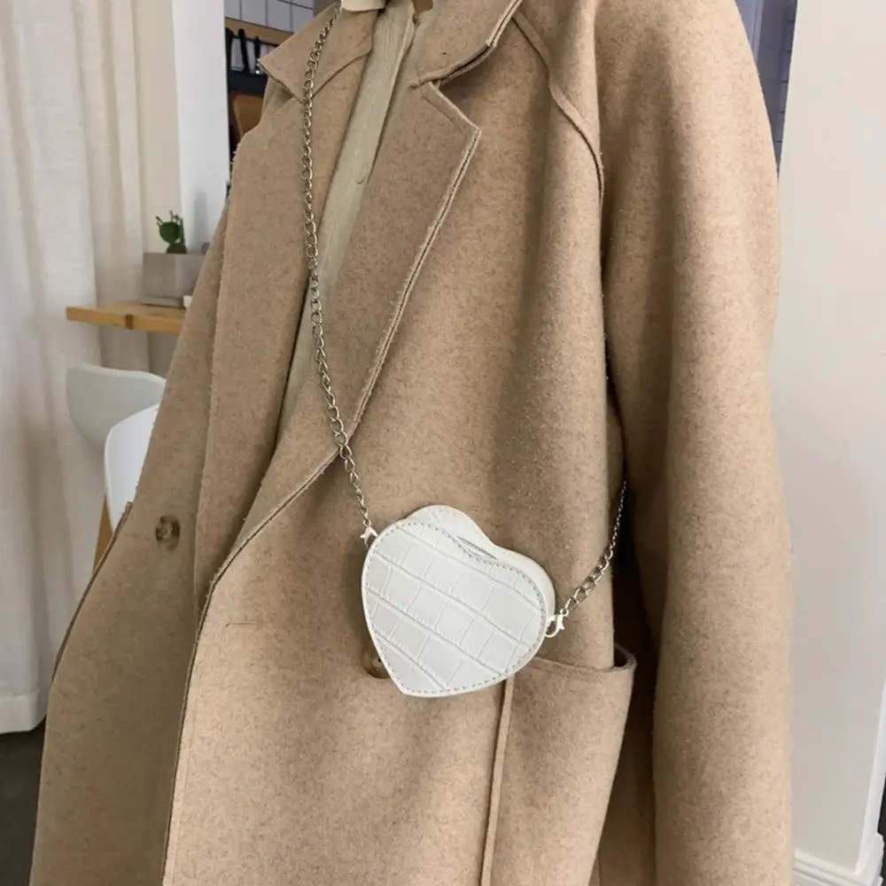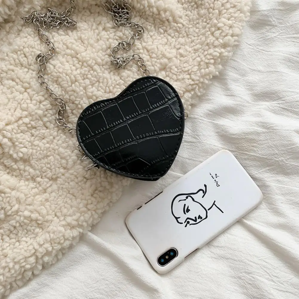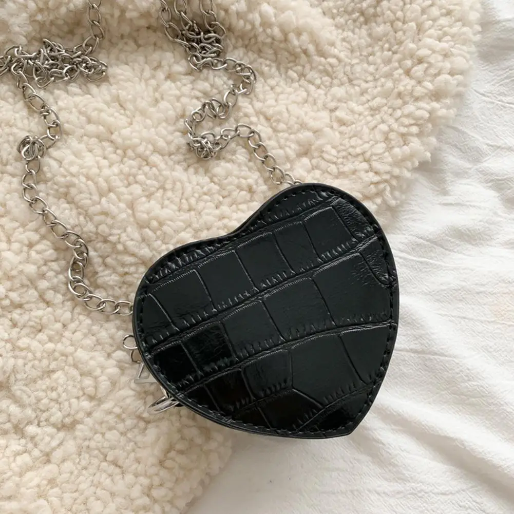 Дамские повседневные мини-сумки через плечо в форме сердца, женские детские кожаные однотонные маленькие сумки на плечо с цепочкой