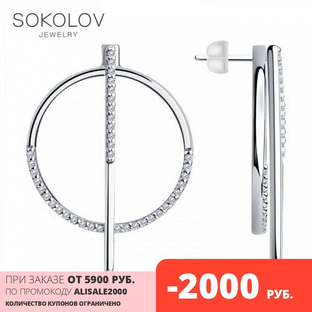 Серьги SOKOLOV из серебра с фианитами, Серебро, 925, Женские, Серьг...