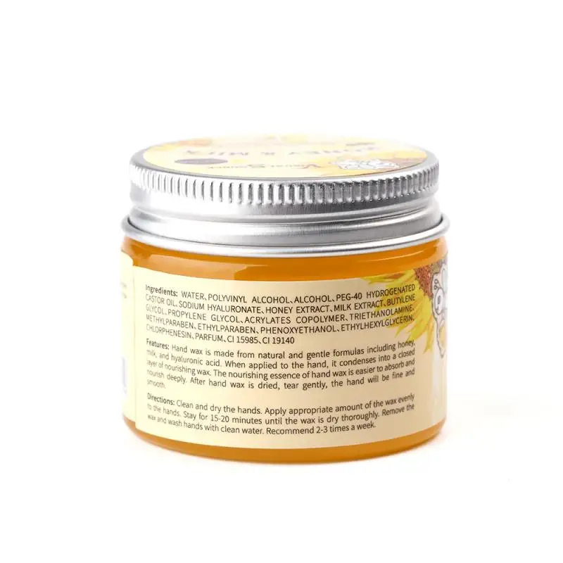 Восковая маска для рук Milk & Honey, изготовленная из натуральных и мягких формул, включая мед, молоко и гиалуроновую кислоту. Натуральное молоко и мед являются основными ингредиентами, которые помогают отшелушивать, отбеливать и увлажнить. Гиалуроновая кислота-с использованием питательных веществ, способствует поглощению питательных веществ, для достижения более идеального эффекта.