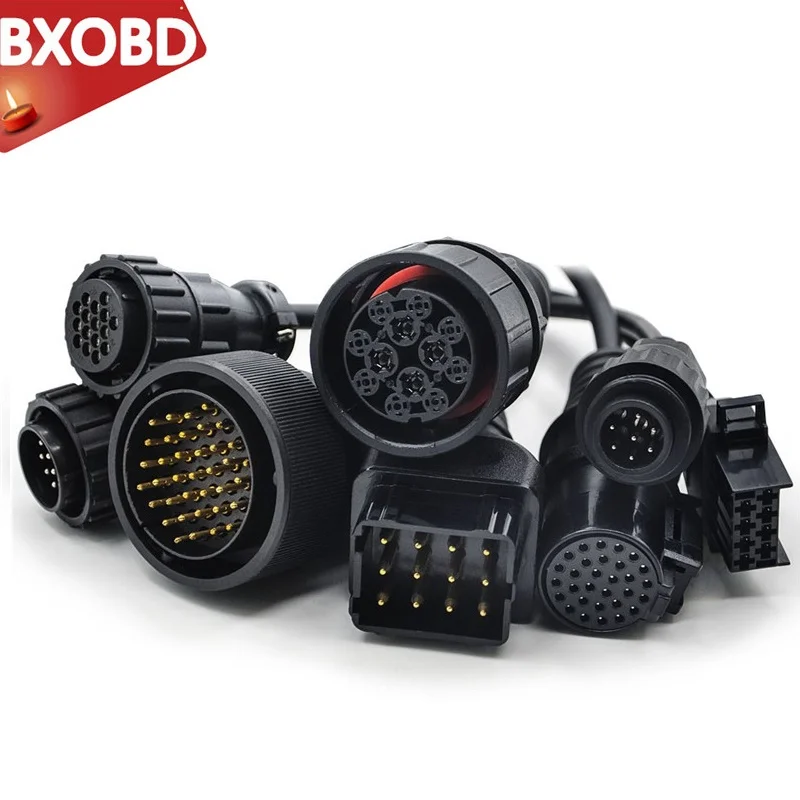 1. 7pin Knorr,W-a-b-c-o кабель прицепа 2.12pin для M-A-N кабеля 3. 37pin для M-A-N кабеля 4. 30Pin для I-v-e-c-o кабеля 5. 16-контактный кабель для S-C-A-N-I-A 6. 14Pin для B-E-N-Z кабеля 7.12Pin для Renault кабель 8. 8-контактный кабель для Volvo