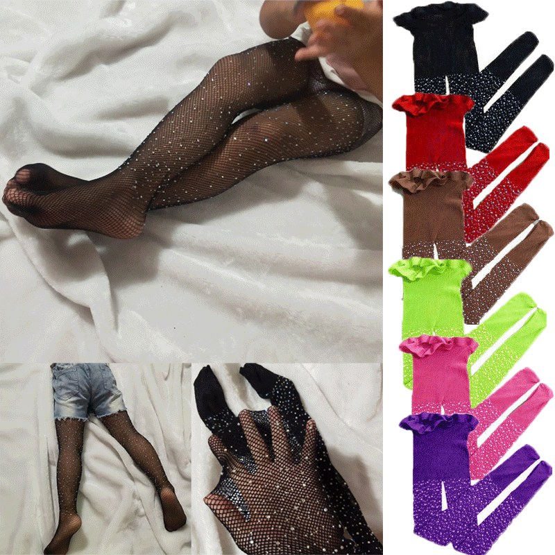 Детские чулки со стразами для девочек, сетчатые колготки, алмазные ...