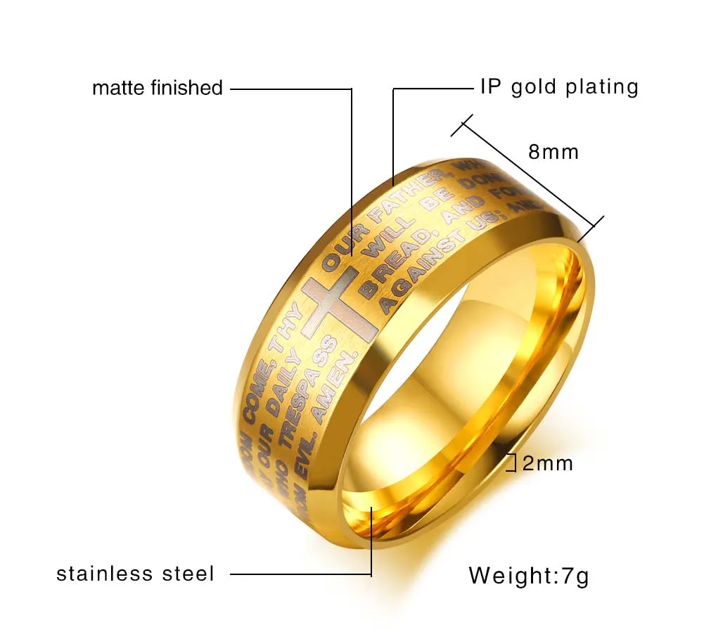 Vnox выгравированы Библии крест кольцо для Мужская обувь 3 цветов в...