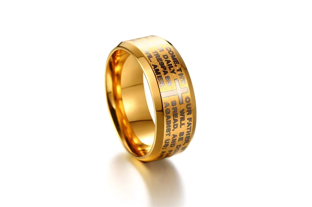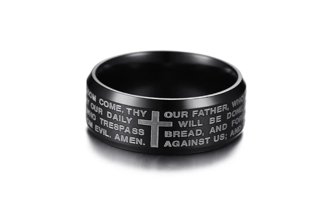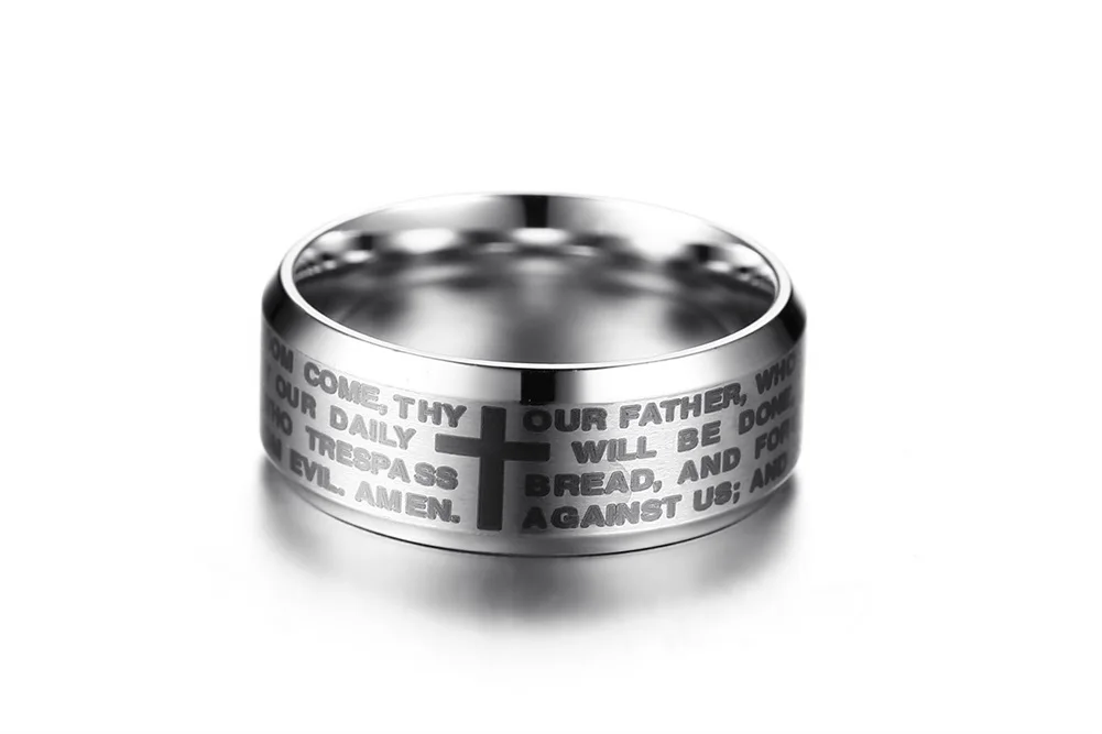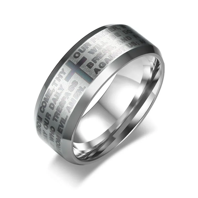 JeeMango нео-нержавеющая сталь, в готическом стиле мужские религиозные кольца ювелирные изделия 8 мм английский Бог молитвенное кольцо 3 Цвета Дополнительно JR364