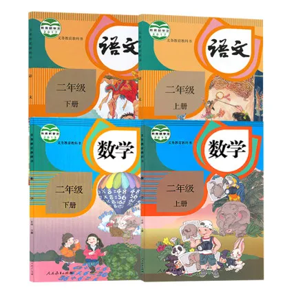 4 книги. Набор учебников по китайскому и математике второго класса, Китай, начальная школа, 2 класс, книга 1 для учеников китайского языка