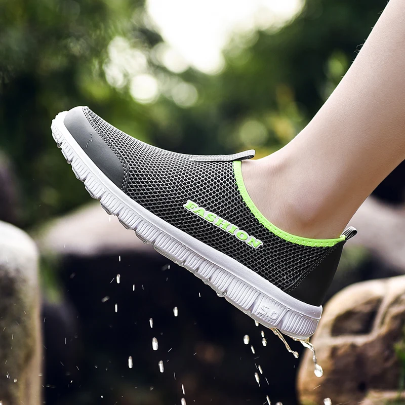 Новые летние сетчатые кроссовки мужская обувь без шнуровки; Повседневные Лоферы светильник Вес прогулочная обувь для женщин; Модная спортивная обувь дышащая с волнообразным краем; Zapatos De Hombre