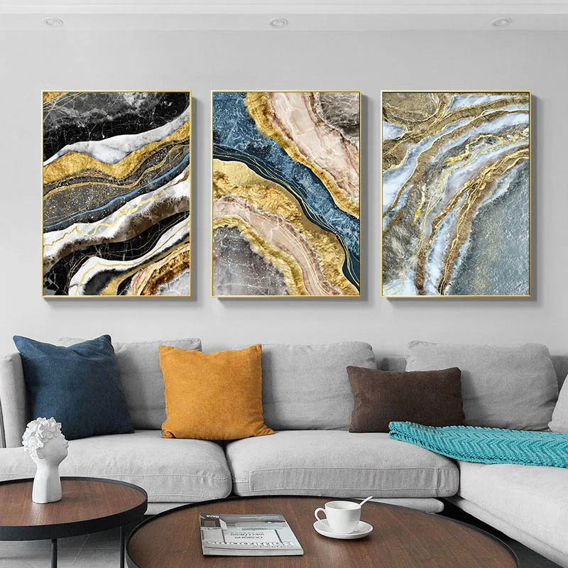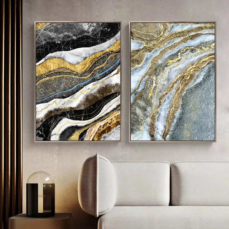 Золотистый мраморный узор Абстрактная Картина на холсте скандинавский плакат и печать Современная Настенная картина современный декор для гостиной