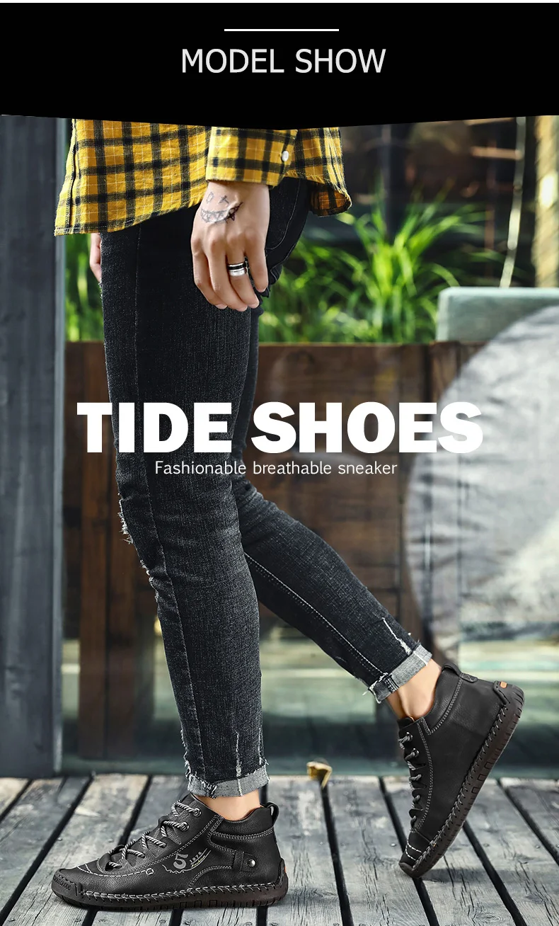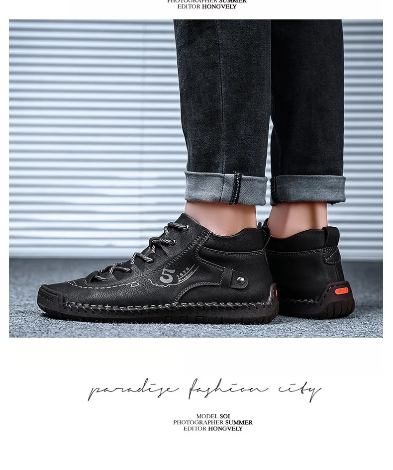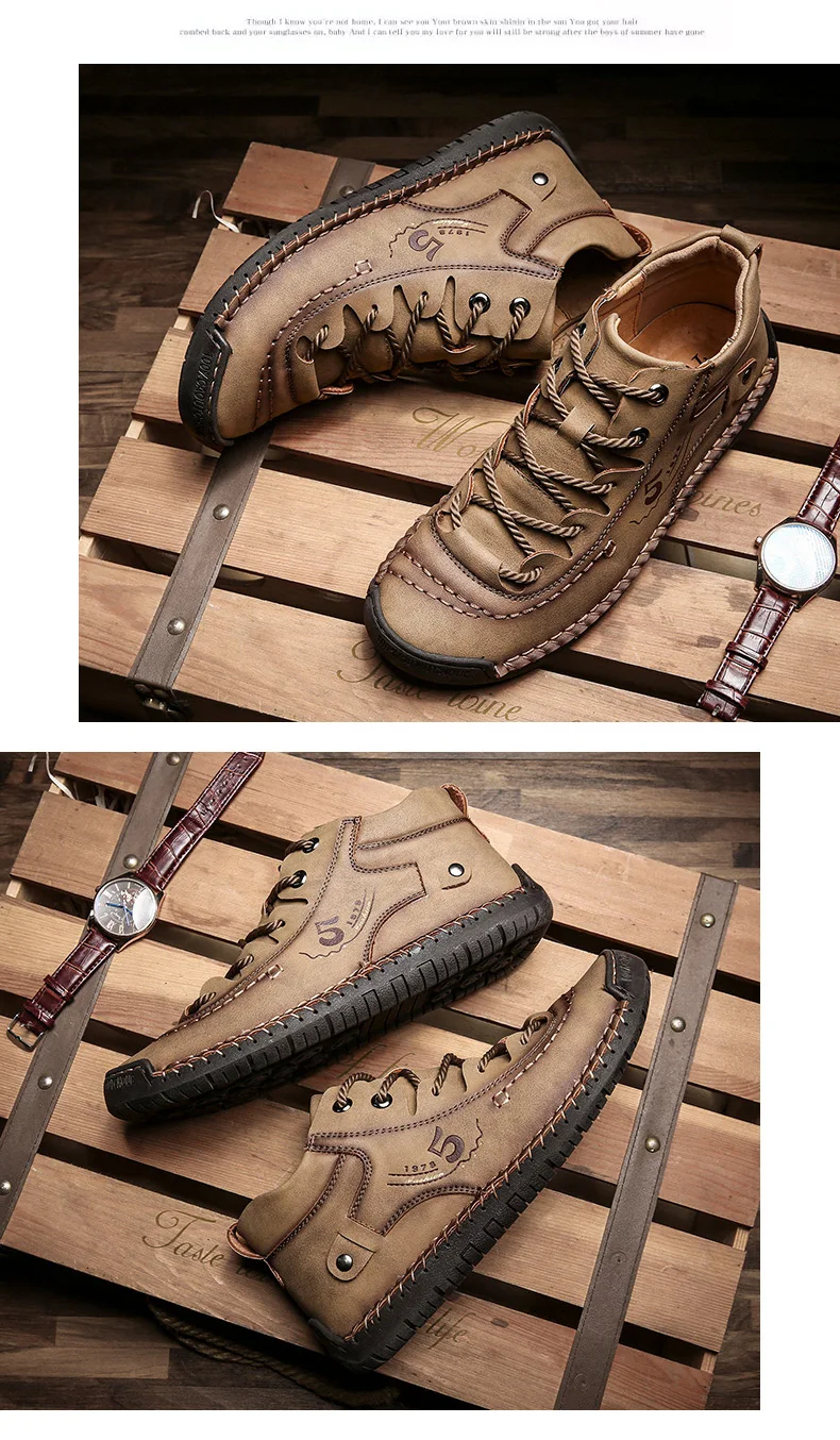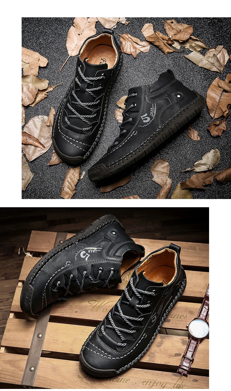 Кроссовки мужские кожаные средней длины, ботинки ручной работы в ви...