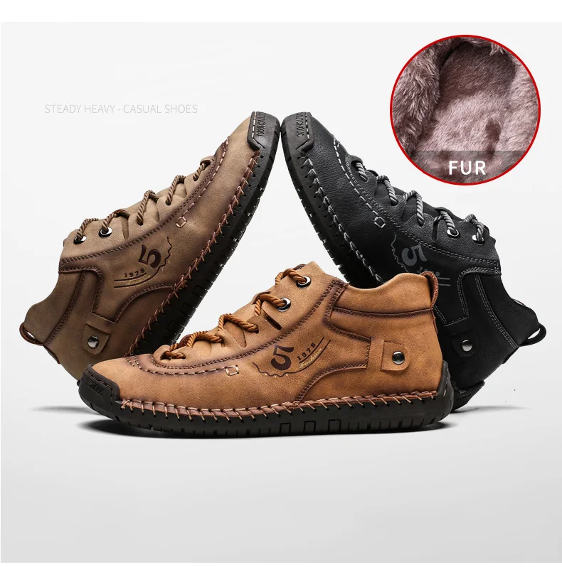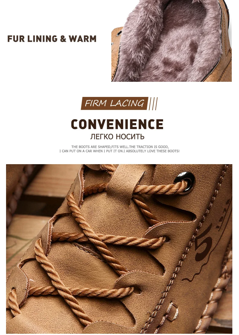 Мужская зимняя обувь, кожаная Теплая мужская обувь, удобная обувь, меховые водонепроницаемые ботильоны, мужская обувь на шнуровке, большой размер 38-48