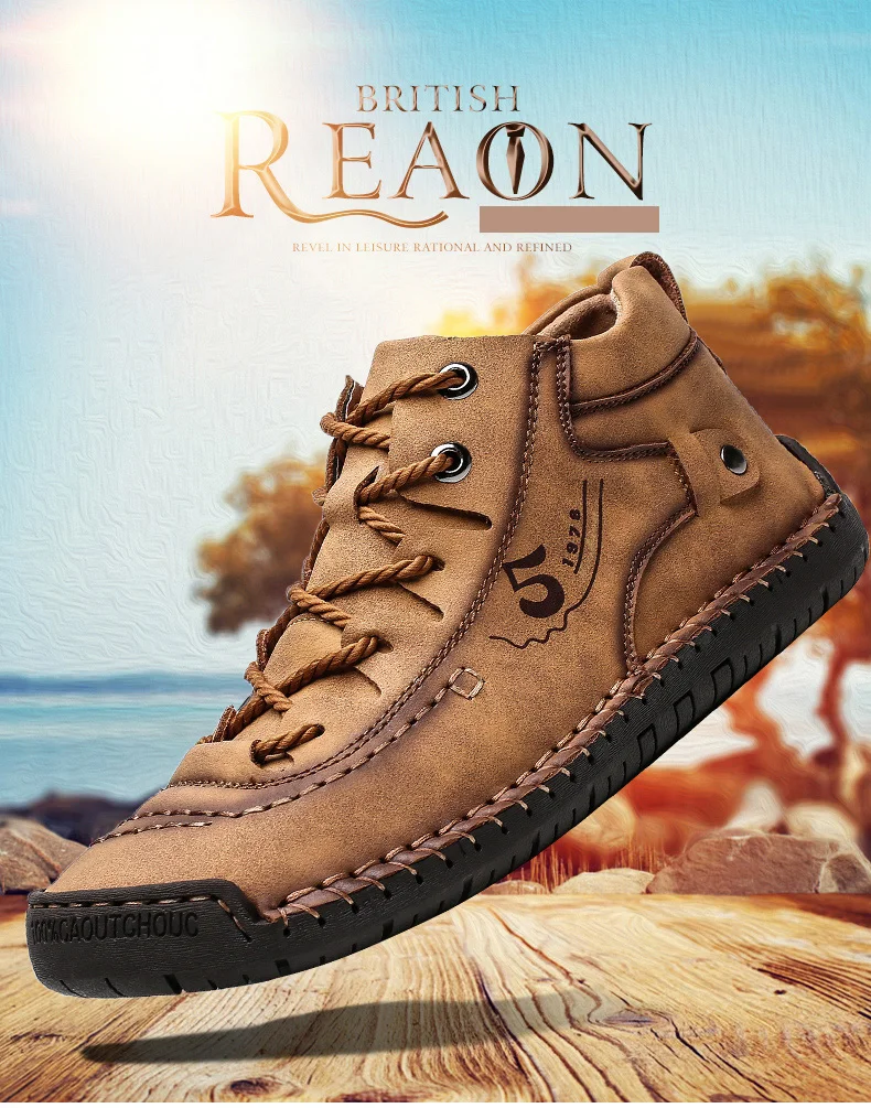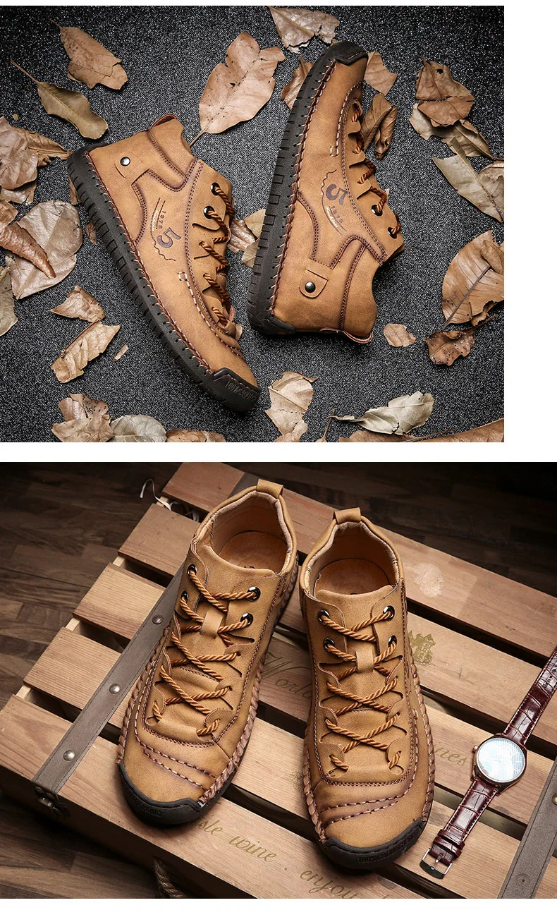 Мужские кожаные ботинки, теплые ботинки ручной работы, для осени и ...