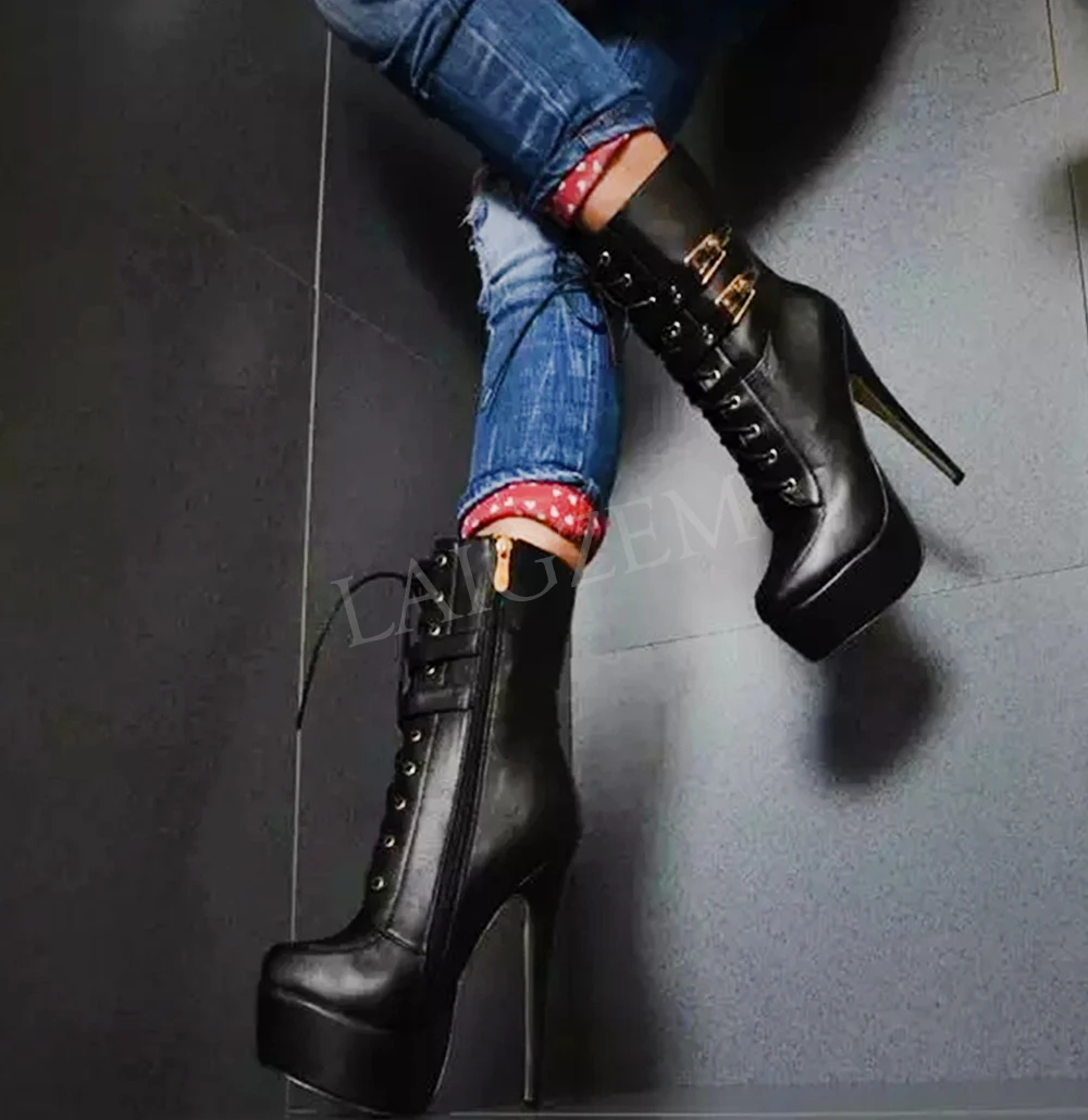BERZIMER для женщин на платформе; Ботинки на каблуках; Без застежек...