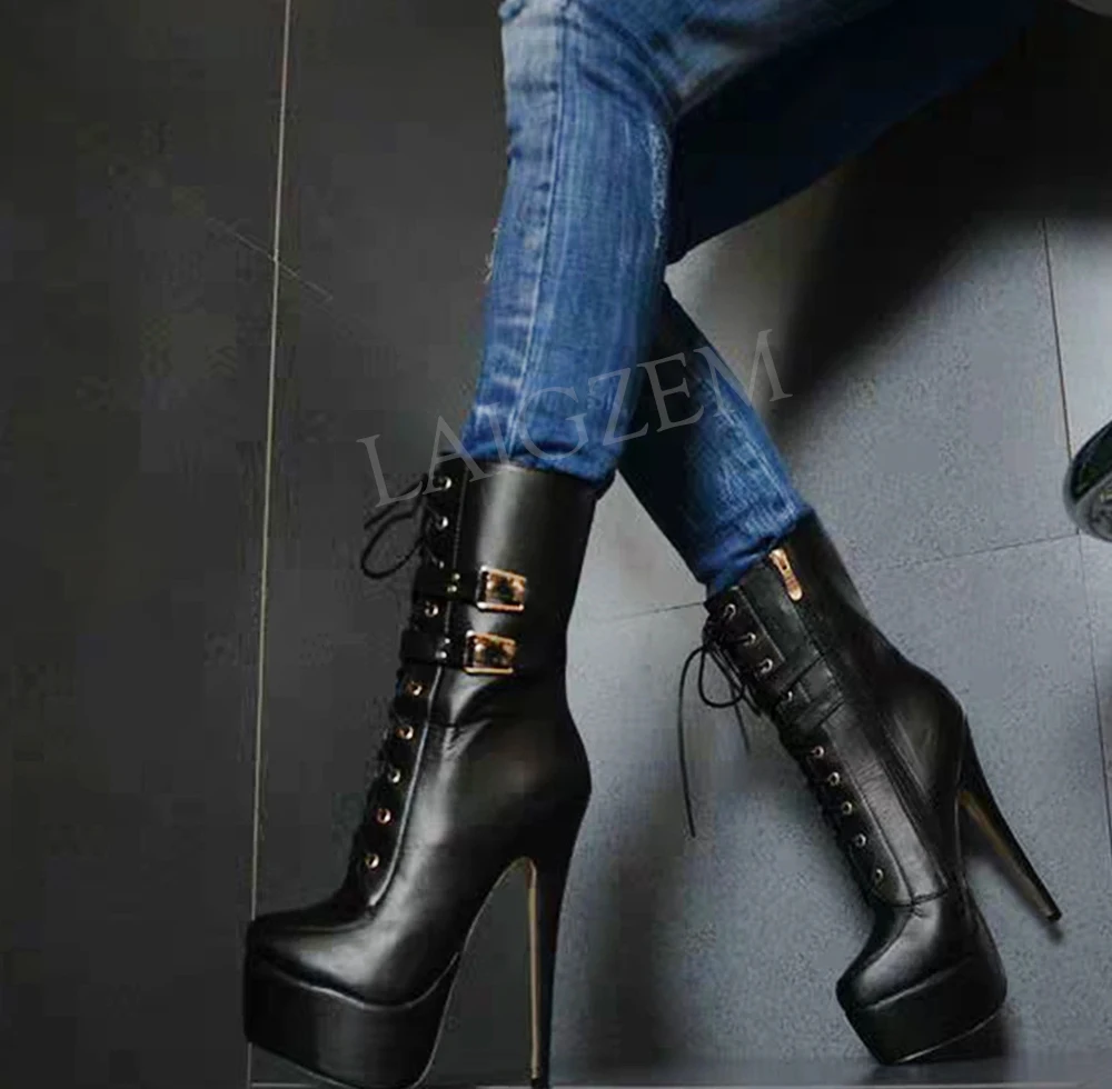 BERZIME Модные ботильоны на платформе с боковой застежкой-молнией; ...