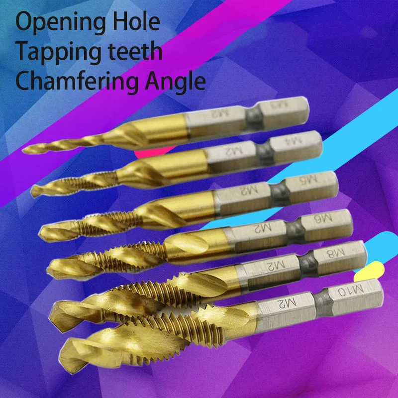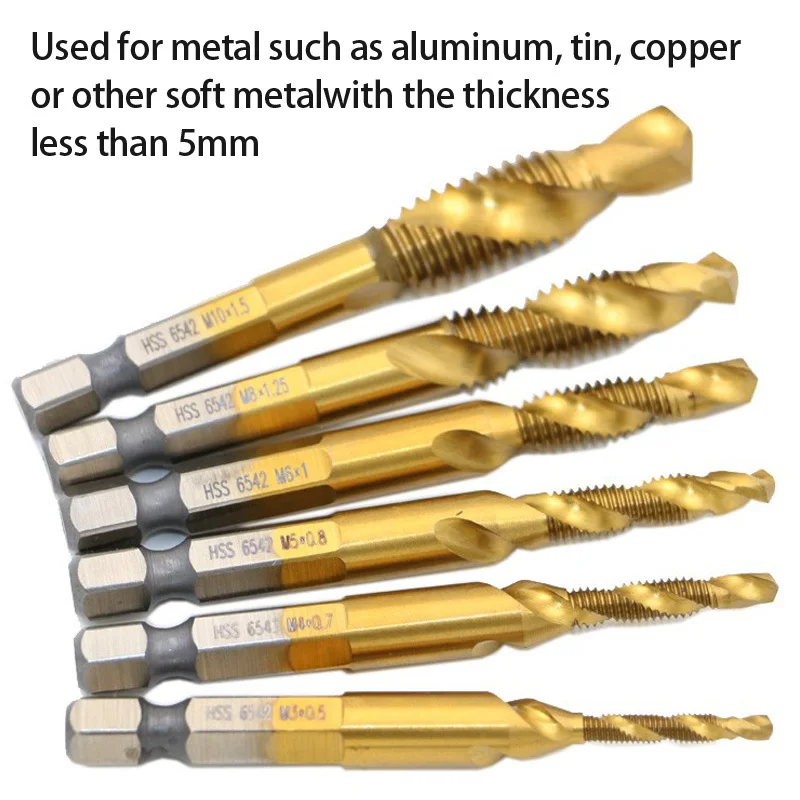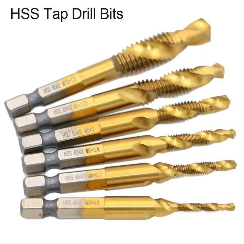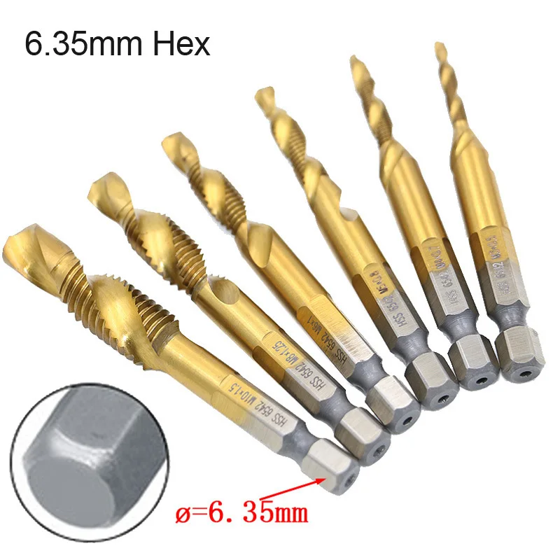 Набор винтов из высокоскоростной быстрорежущей стали с шестигранным хвостовиком 14 дюйма, метрические композитные сверла для метчиков, Метчик подходит для металла, стали M3, M4, M5, M6, M8, M10