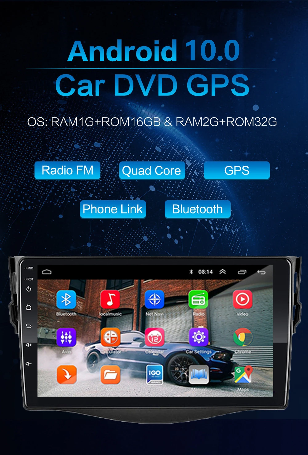 Автомагнитола на Android 10,1, автомобильный dvd-плеер для Toyota RAV4 Rav 4 2007 2008 2009 2010 2011 2 din 1024*600, gps-навигация, Wi-Fi, 4 ядра