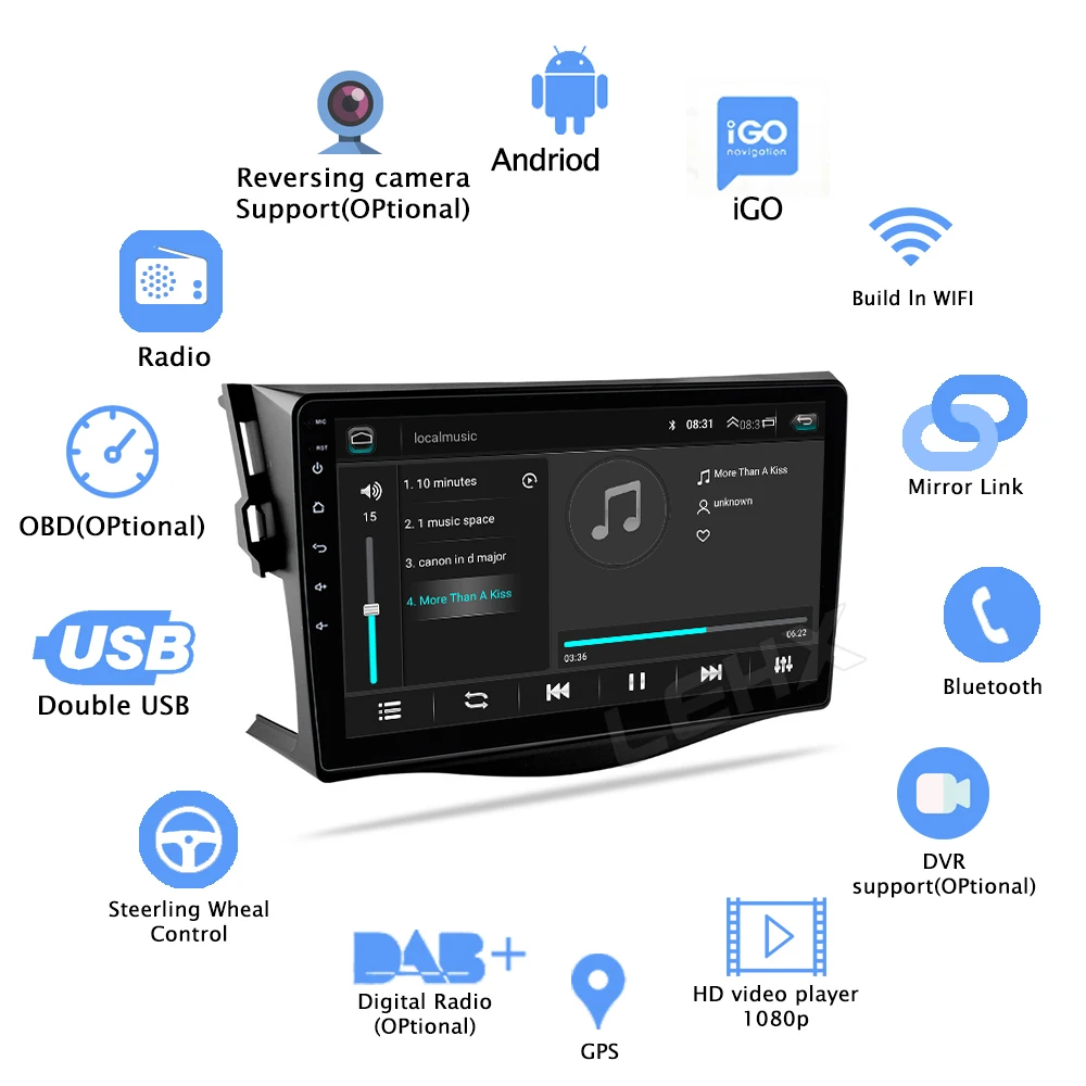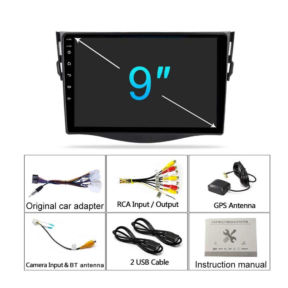 Для Toyota RAV4 2007-2011 1. Операционная система Android 10,1, 10,1-дюймовый 1024*600 емкостный экран2. Супер аппаратная производительность, 1/2G RAM + 16/32G ROM3. Интернет-развлечения, встроенный WiFi модуль4. Богатое бесплатное приложение, GOOGLE PLAY.5. Встроенные часы и календарь, они имеют реальные часы, показывающие время, часы/дату/неделю, регулируемые.6. Онлайн поддержка навигации Google Maps, если вы находитесь в Интернете, вы можете использовать gps-навигацию7. Радио-тюнер: fm-радио, радиоответ полоса пропускания: FM: 87,5-108,5 МГц8. : музыка, телефонная книга, свободные руки10. Управление рулевым колесом: Да11. Вход камеры заднего вида: Поддержка12. Поддержка мультимедийного Проигрывателя Android, вы можете воспроизводить музыку/Фильмы/фотографии на локальном usb. Онлайн-развлечения, поддержка онлайн-видео, фильмов, музыки, радио, Youtube, Yahoo, MSN...13. Стерео музыку можно воспроизводить на ваш мобильный телефон.14. Камера заднего хода/Запись вождения DVR: Поддержка (опционально)15. Поддержка рулевого колеса автомобиля медиа-контроль16. Телефонная книга17. Данное устройство не имеет движения DVD и не может воспроизводить DVD диски.18. Языковое меню: английский, французский, немецкий, испанский, португальский, русский, арабский, турецкий, итальянский и т. Д.Обратите внимание: Вы должны иметь определенное количество опыта. Или вы можете проконсультироваться с профессионалом. По крайней мере. Вы должны знать год производства вашего автомобиля. Пожалуйста, оставьте сообщение в заказе. Сообщите нам год производства вашего автомобиля. По возможности отправьте нам фотографию центральной консоли и руля.Посылка:1 * хост мультимедийного плеера1 * кабель питания1 * RCA видео кабель1 * Usb кабель1 * Руководство пользователя
