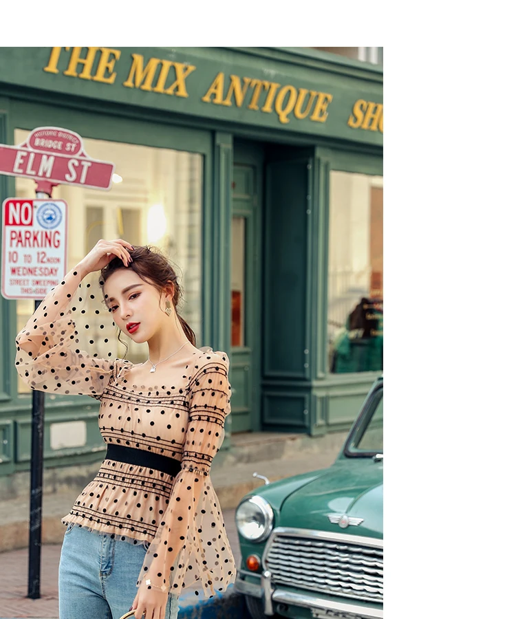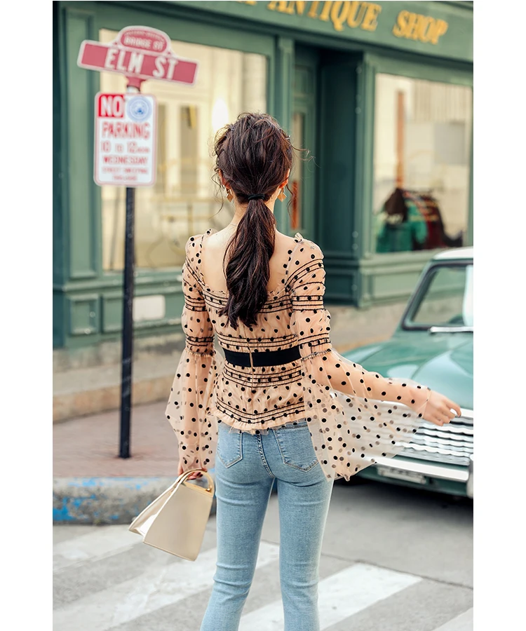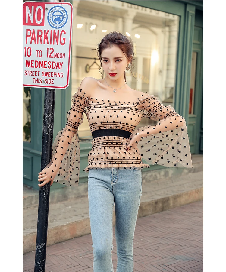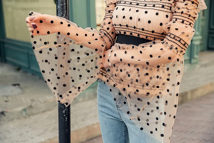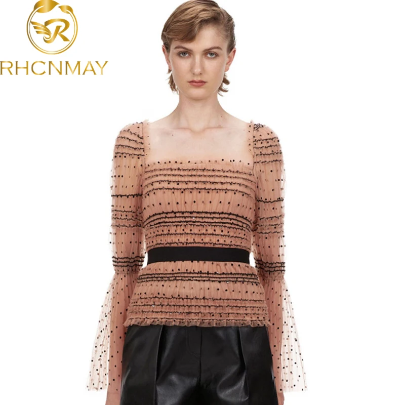 Женская свободная рубашка с квадратным вырезом, повседневная сетчатая блузка с расклешенными рукавами, уличная одежда, топы, весна-лето 2020