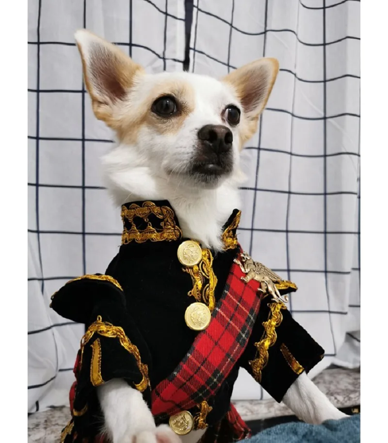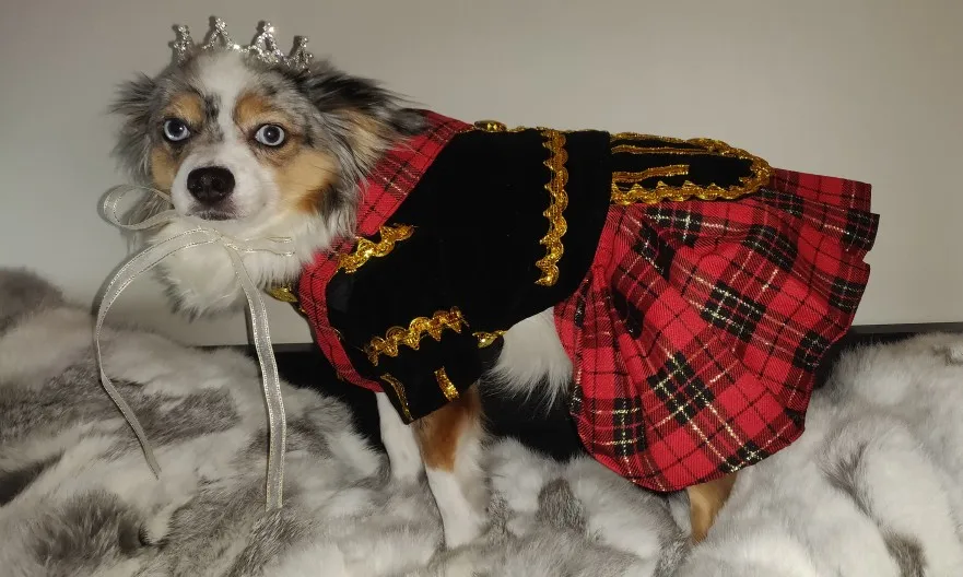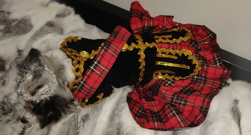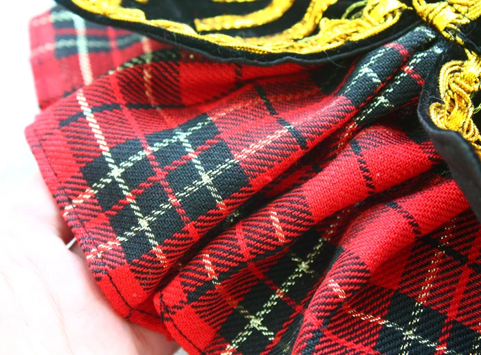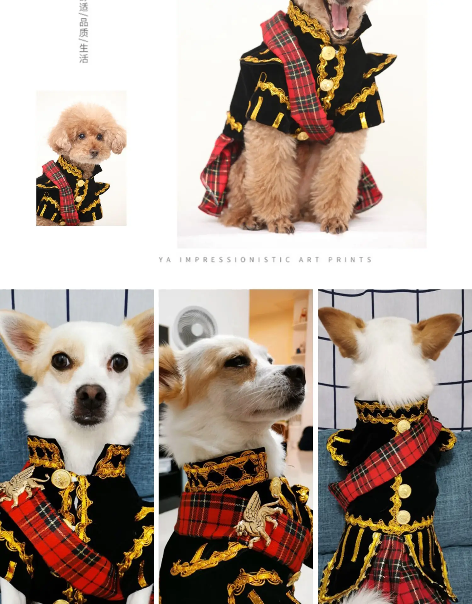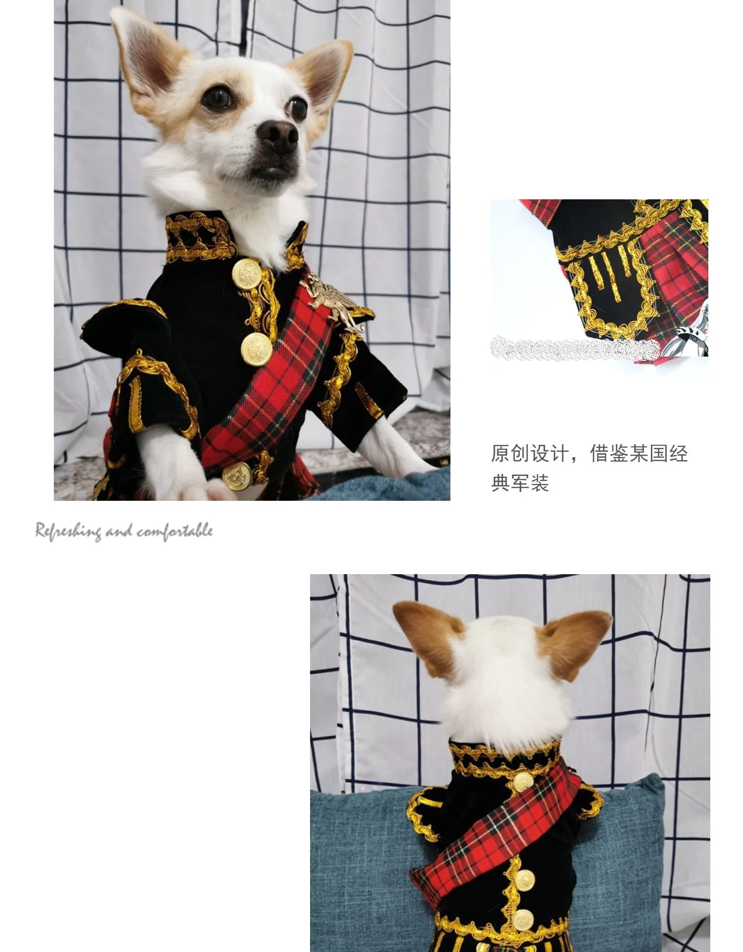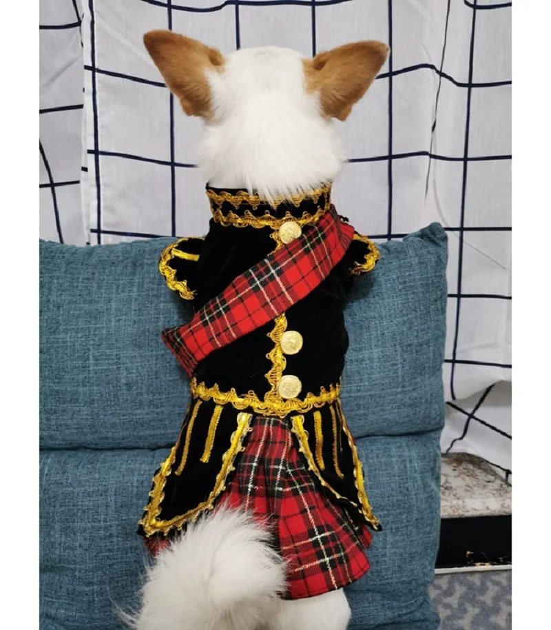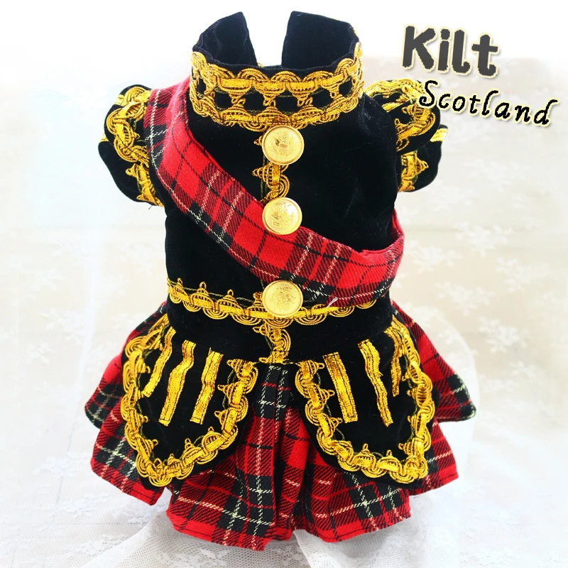 Бесплатная доставка; Ручная работа; Одежда с принтом в виде собак шотландский плед килт Королевский Стиль форма из вельвета для домашних животных, костюмы со смокингом, кошки пудель, Йорк Мальты