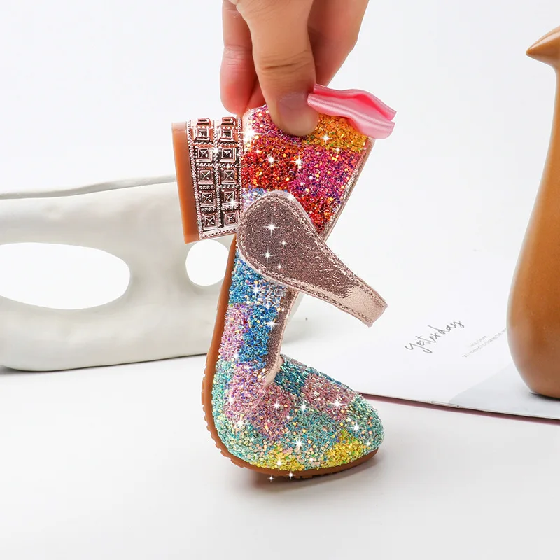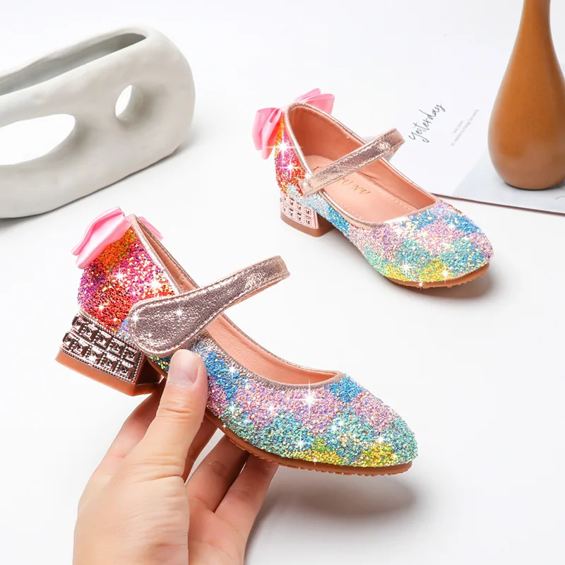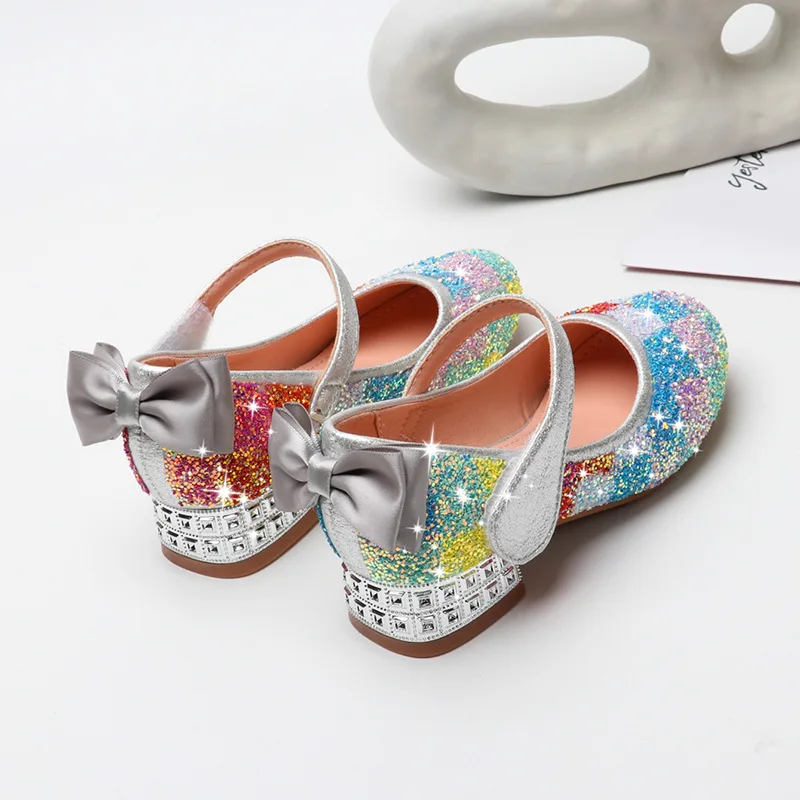 Танцевальная обувь для девочек; обувь принцессы для детей; обувь с блестками для маленьких девочек; обувь на каблуке с кристаллами; обувь для студентов