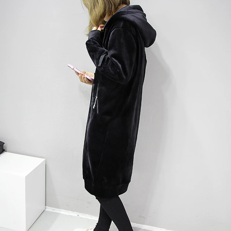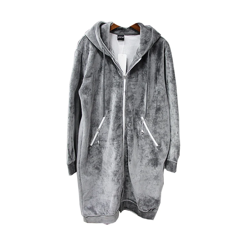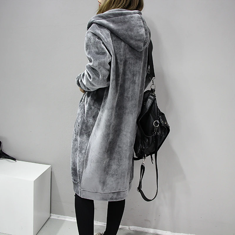 Толстовка Женская Осенняя, шелковая, Вельветовая, длинная, черная, серая