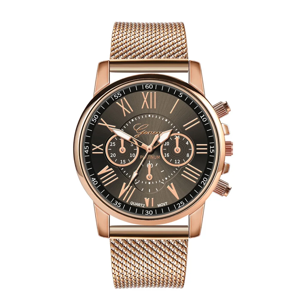 Женские наручные часы с сетчатым браслетом, часы цвета розового зол...