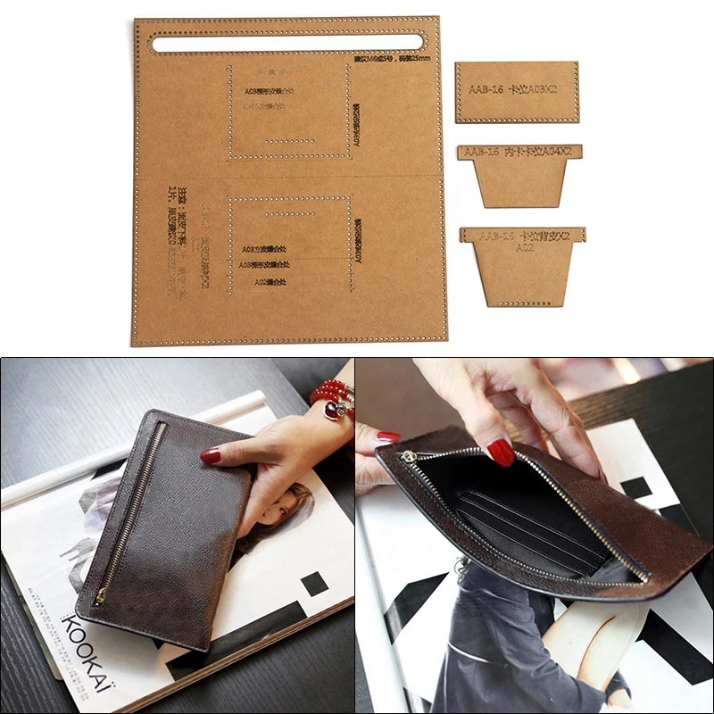 Шаблон из крафтовой бумаги сделай сам, модный длинный кошелек для женщин, клатч, узор для кожевенного ремесла, трафарет для шитья сделай сам, 12,4 см * 24 см, 1 комплект