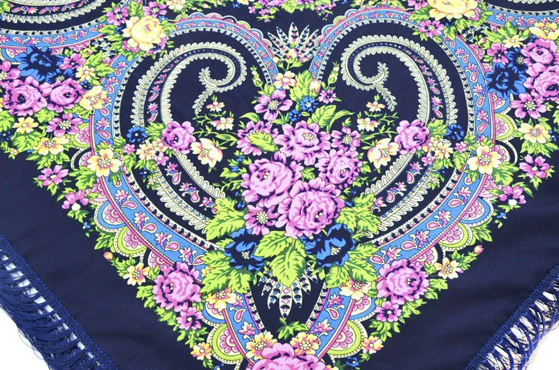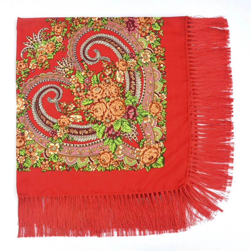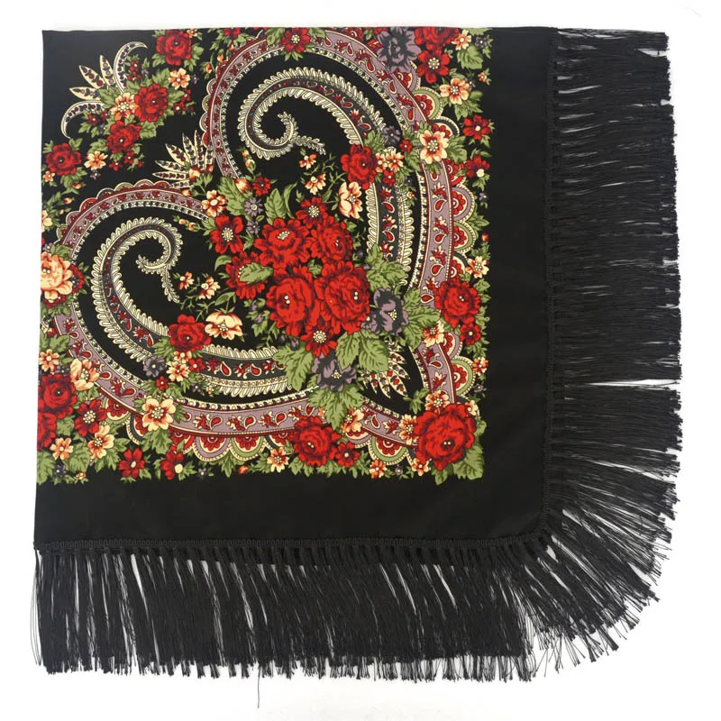 Женский квадратный шарф, шаль из пашмины в этническом стиле ретро, с цветочным узором, зима шарф в русском стиле, одеяло с бахромой