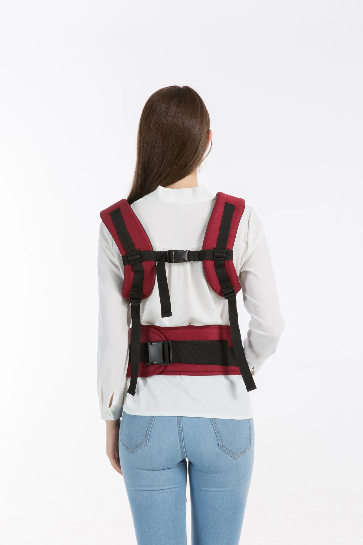 При самостоятельном применении носителя убедитесь, что носитель в безопасности, отрегулируйте длину ремня, застегните замок и вытолкните носитель с обеих сторон, схватив его обеими руками. После того, как вы убедитесь, что он полностью застегивается, носите ребенка обеими руками, сначала поместите его ножки сверху в переноску. Носите ребенка в положении сидения.