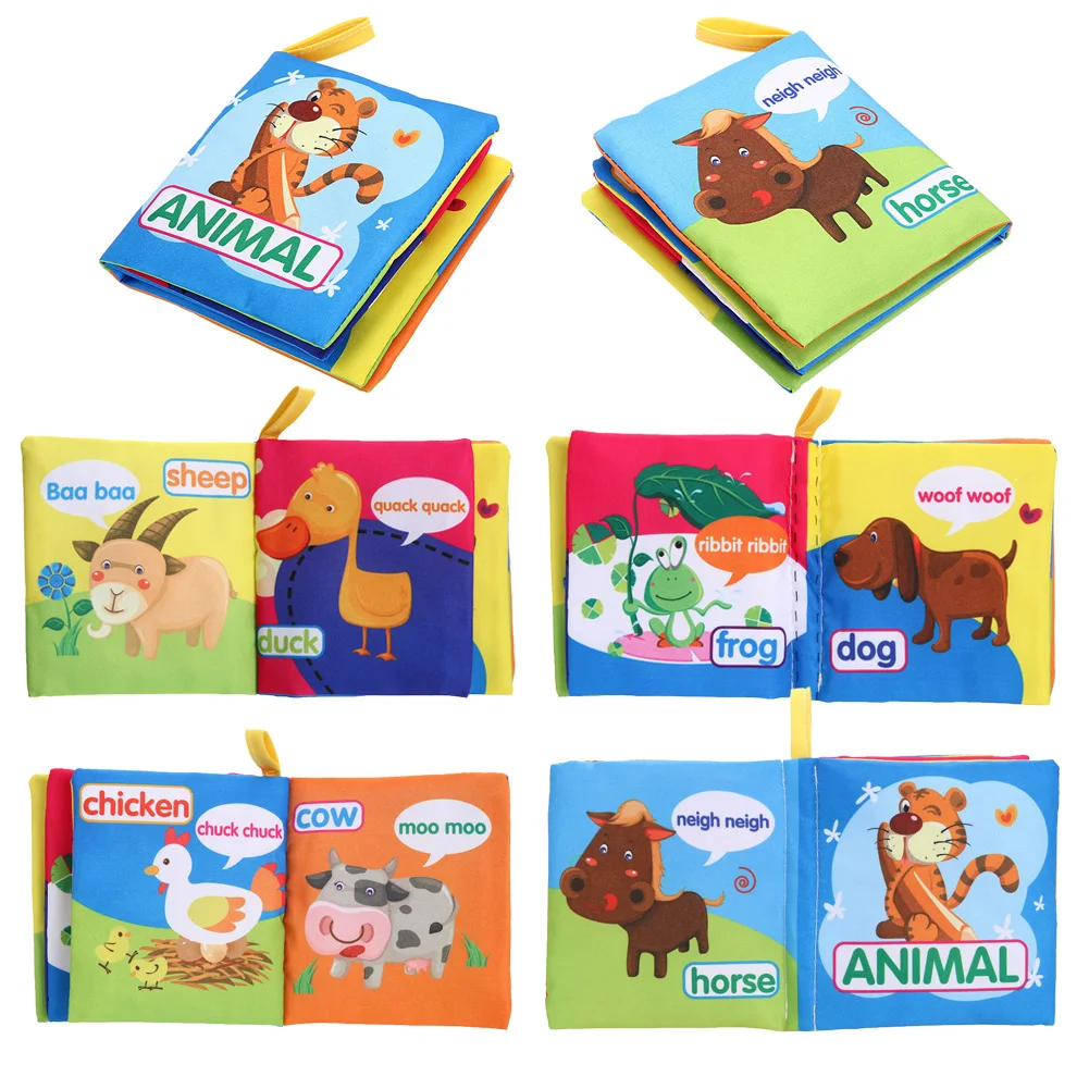 Детская мультяшная тканевая книга игрушки мягкая ткань английский фрукт животное история книга для детей раннее образование мультяшная забавная книга игрушки