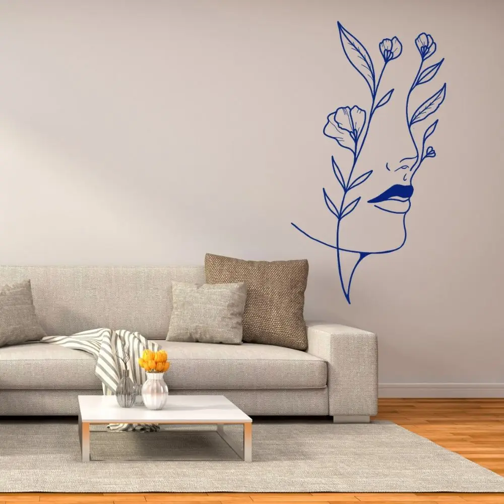 Женское лицо растения линия искусство стены наклейка эстетика дом спальня и фото Винил Съемный A001334
